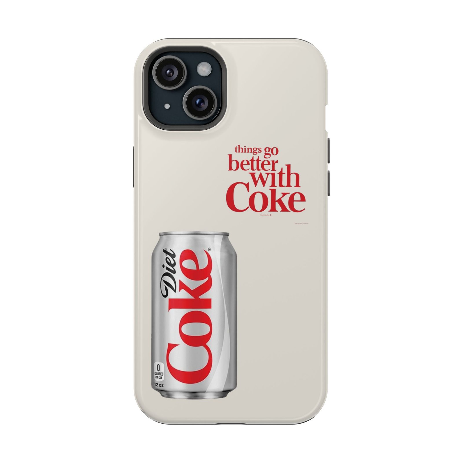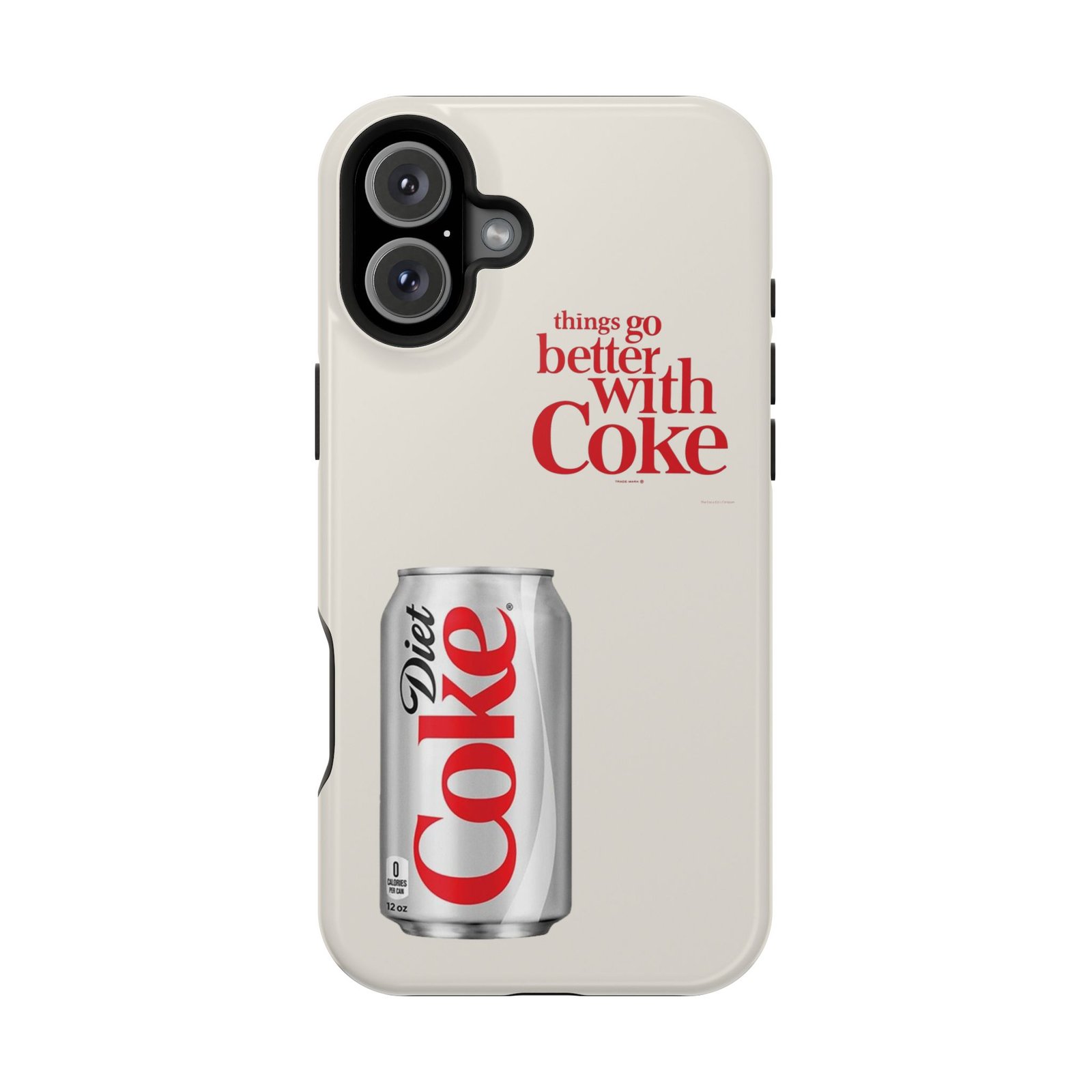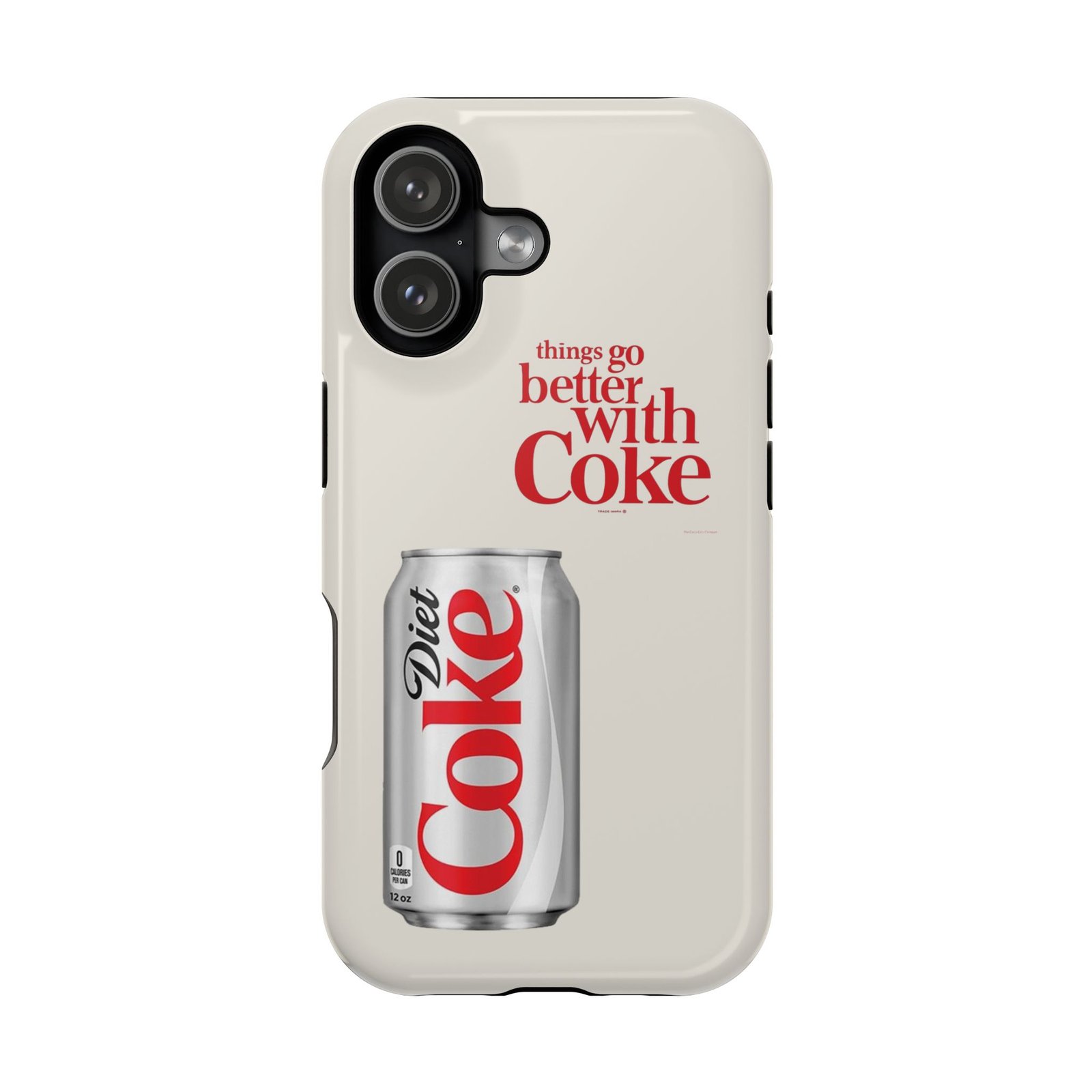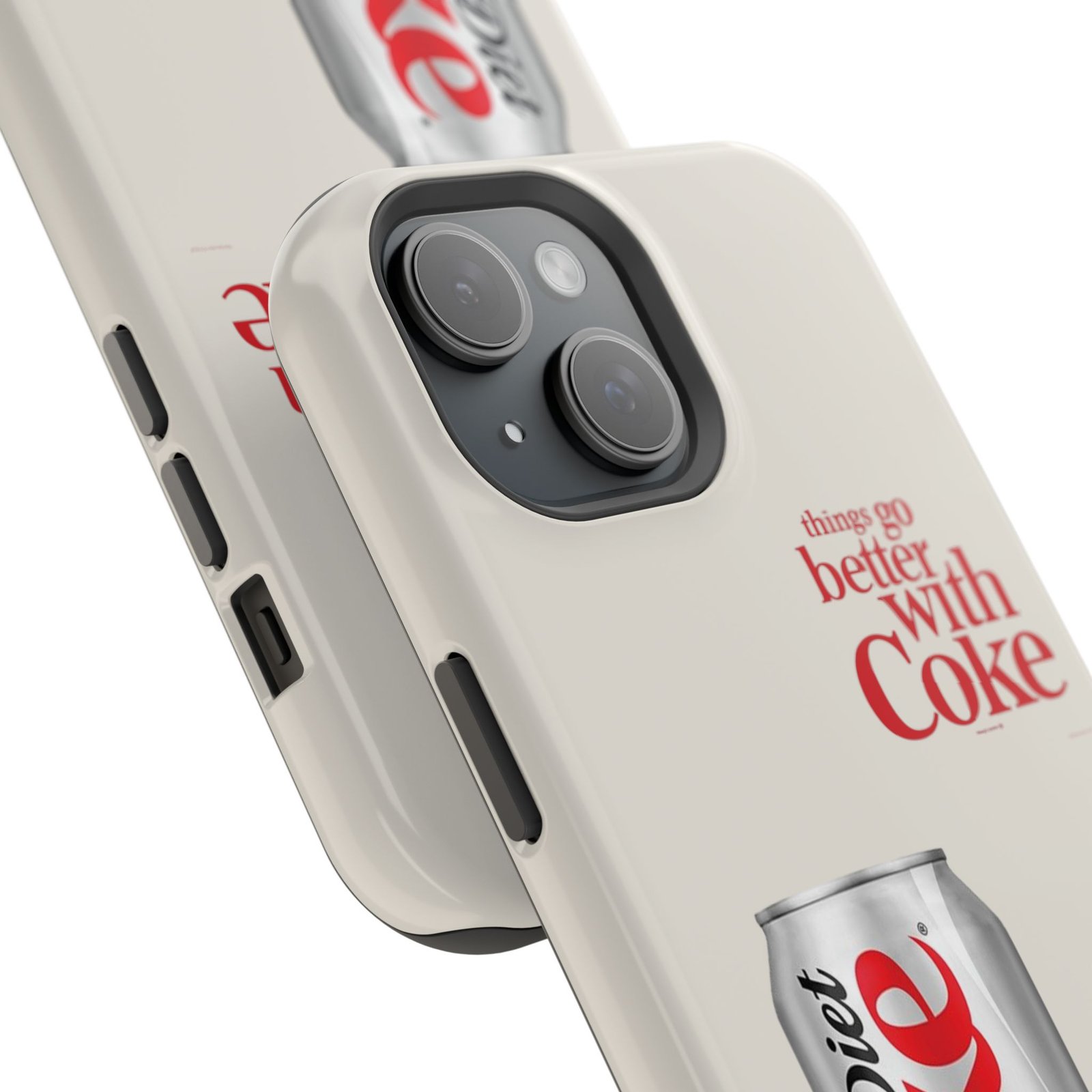 This slim, impact-resistant phone case blends vintage soda nostalgia with modern protection. The full-wrap print showcases a photo-realistic Diet Coke can and retro typography on a soft neutral background — a clean look that stands out without shouting. Built with a rigid polycarbonate shell and a cushioned TPU liner, the case absorbs bumps and resists scratches while keeping wireless MagSafe® accessories aligned. Choose glossy for a bright, reflective finish or matte for a soft, understated feel. It fits naturally into daily life, whether slipped into a pocket for a quick commute or propped on a desk while you work, and it keeps your phone looking lively even after everyday wear.