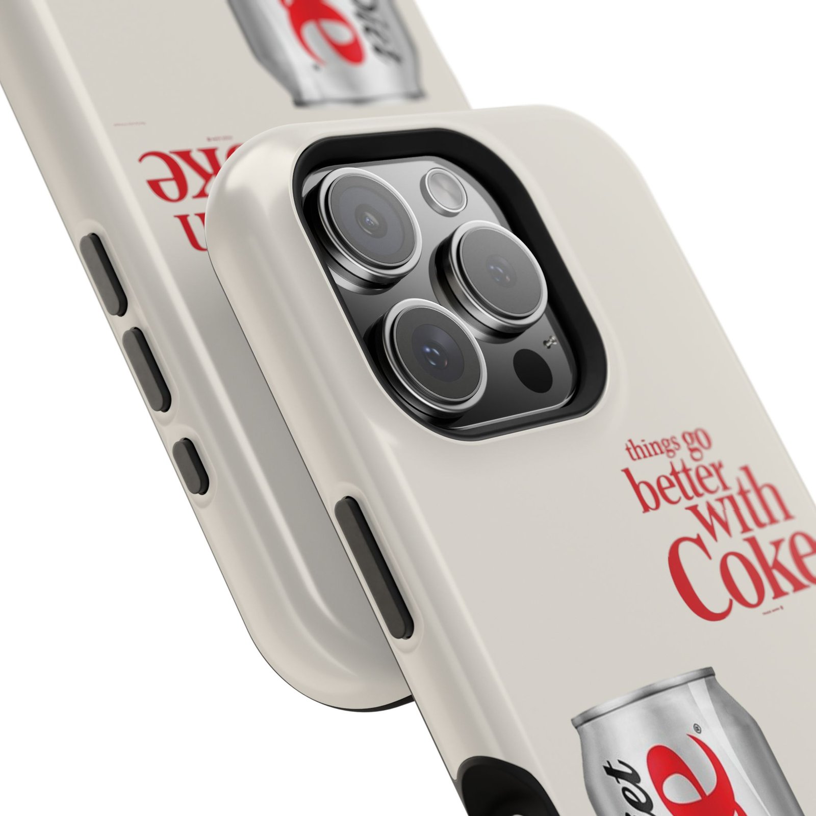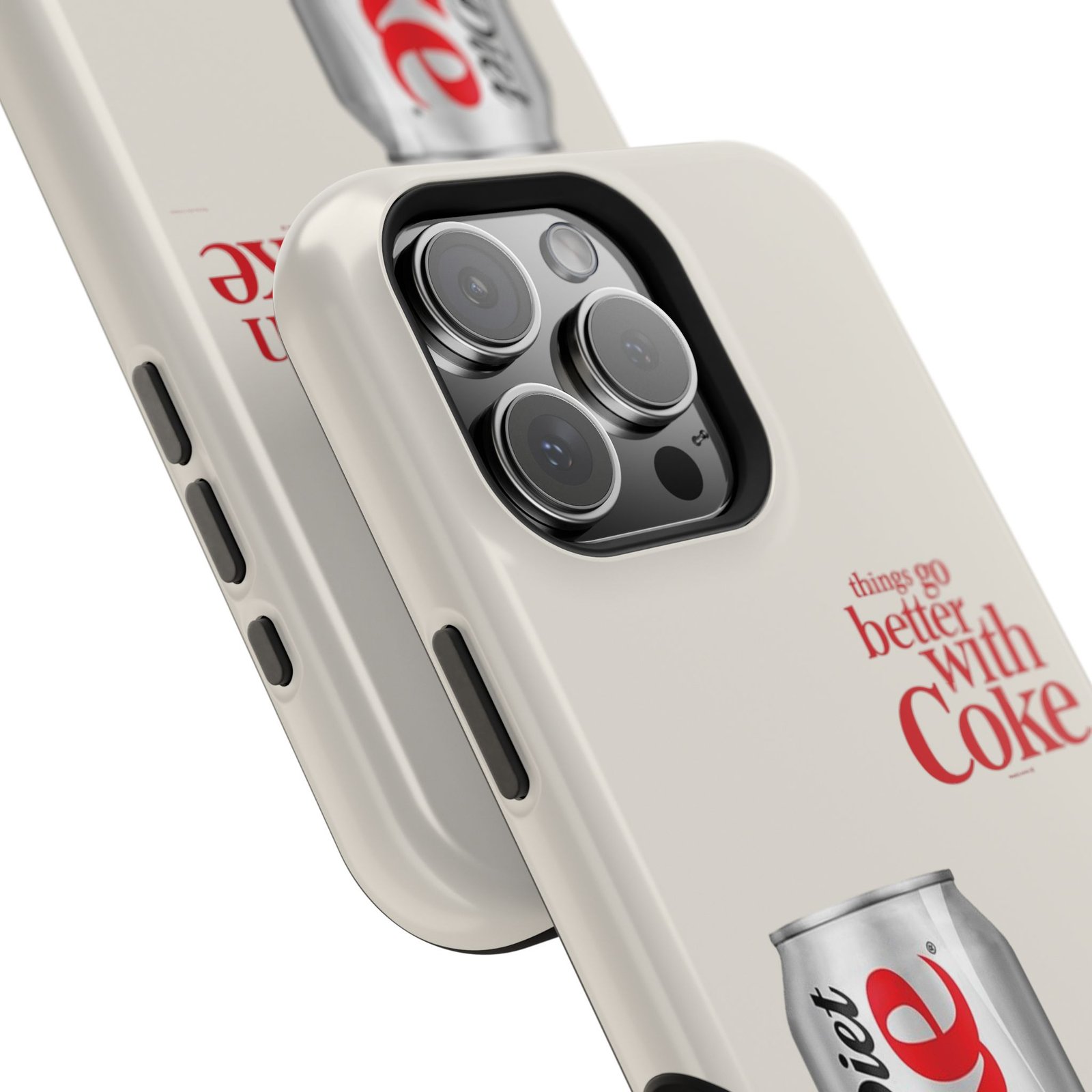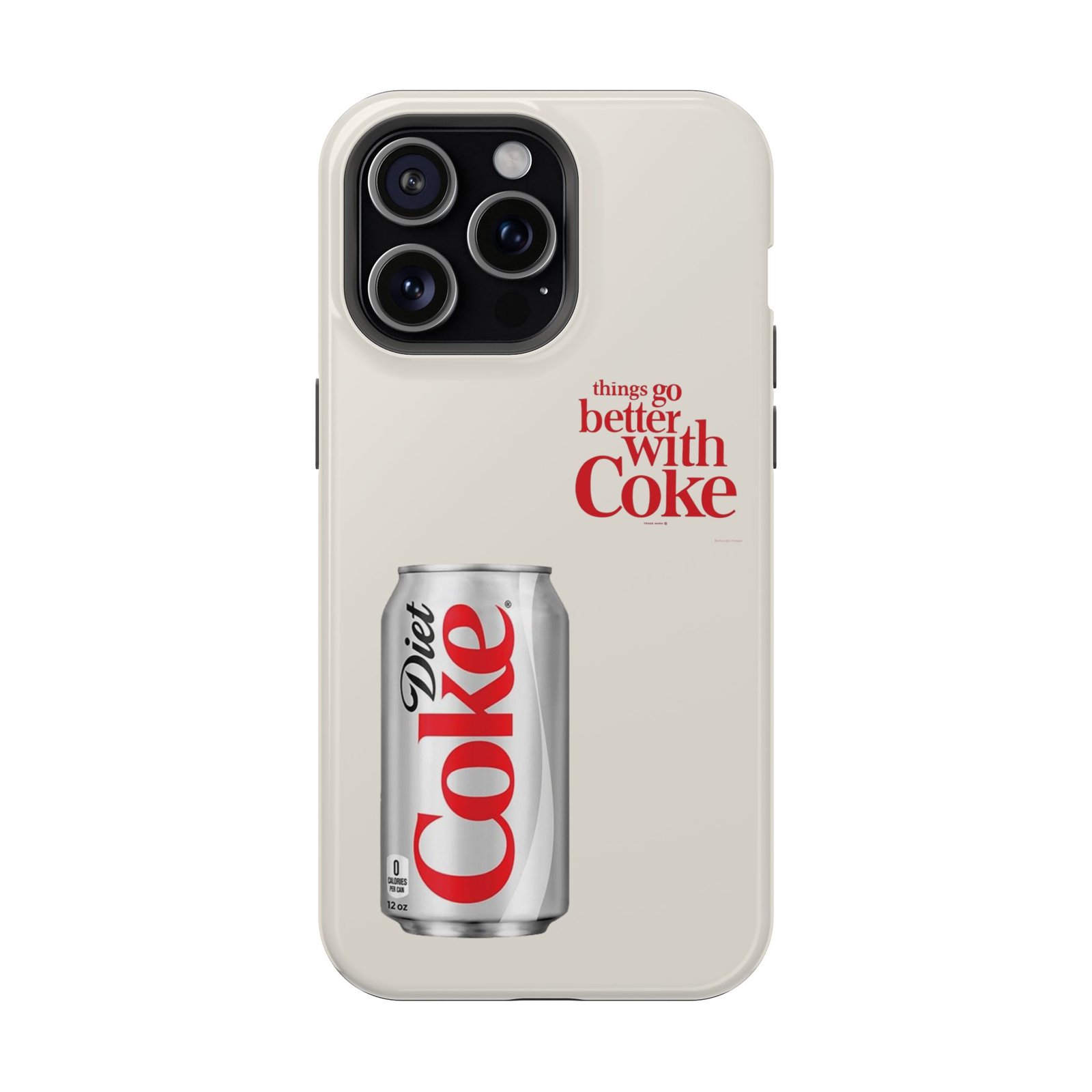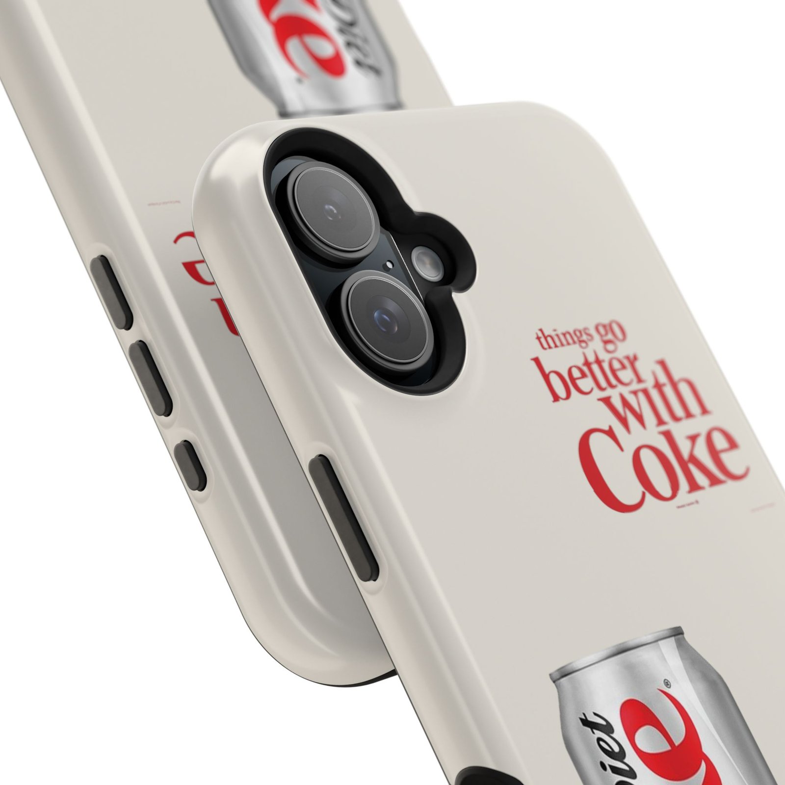 This slim, impact-resistant phone case blends vintage soda nostalgia with modern protection. The full-wrap print showcases a photo-realistic Diet Coke can and retro typography on a soft neutral background — a clean look that stands out without shouting. Built with a rigid polycarbonate shell and a cushioned TPU liner, the case absorbs bumps and resists scratches while keeping wireless MagSafe® accessories aligned. Choose glossy for a bright, reflective finish or matte for a soft, understated feel. It fits naturally into daily life, whether slipped into a pocket for a quick commute or propped on a desk while you work, and it keeps your phone looking lively even after everyday wear.