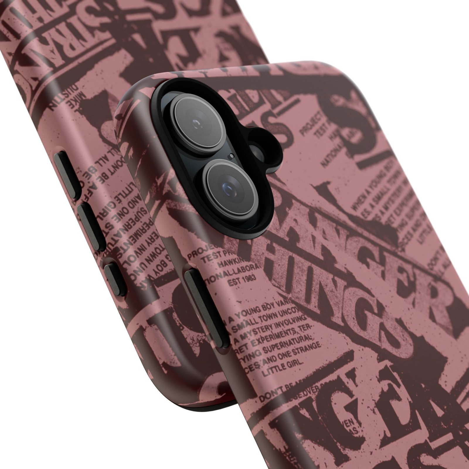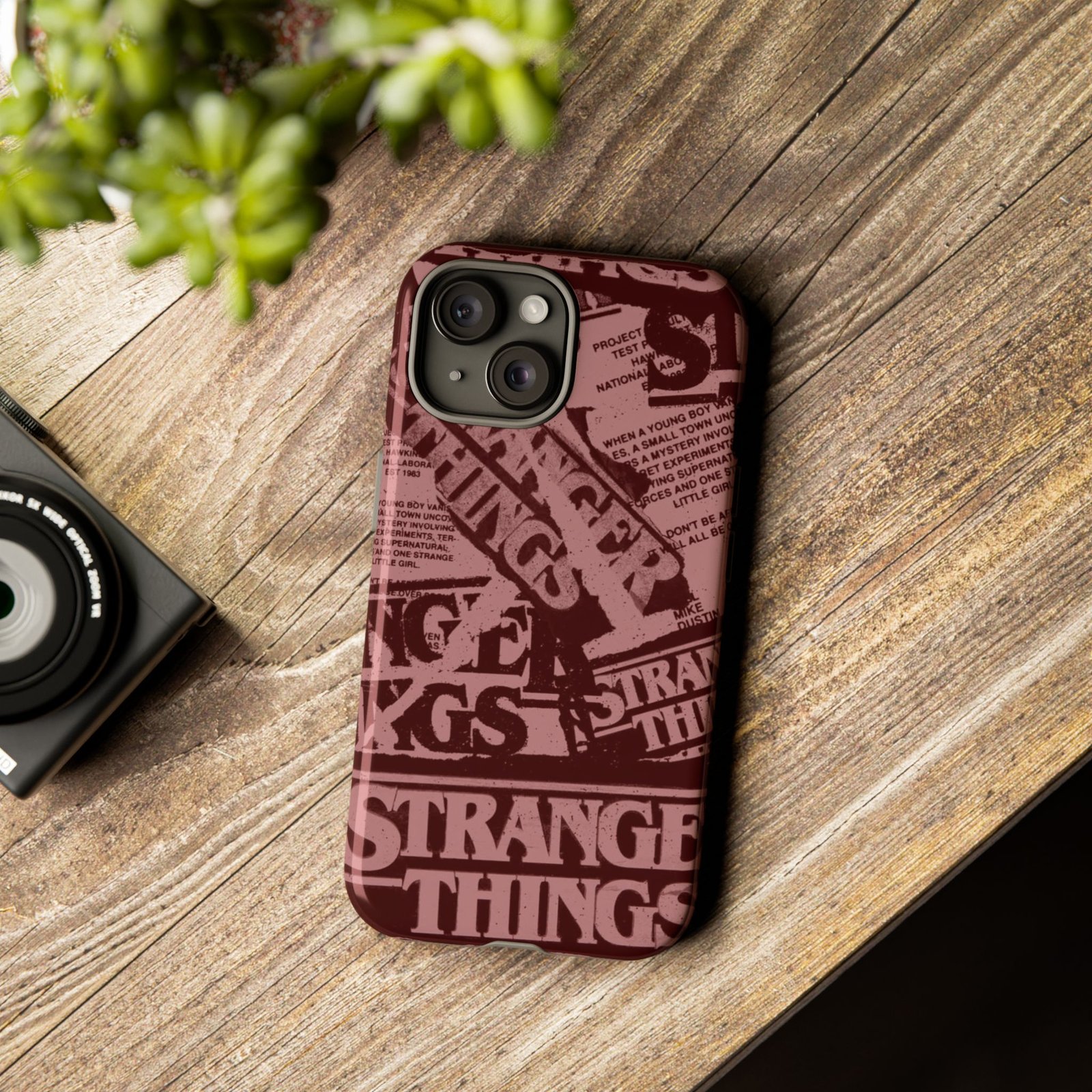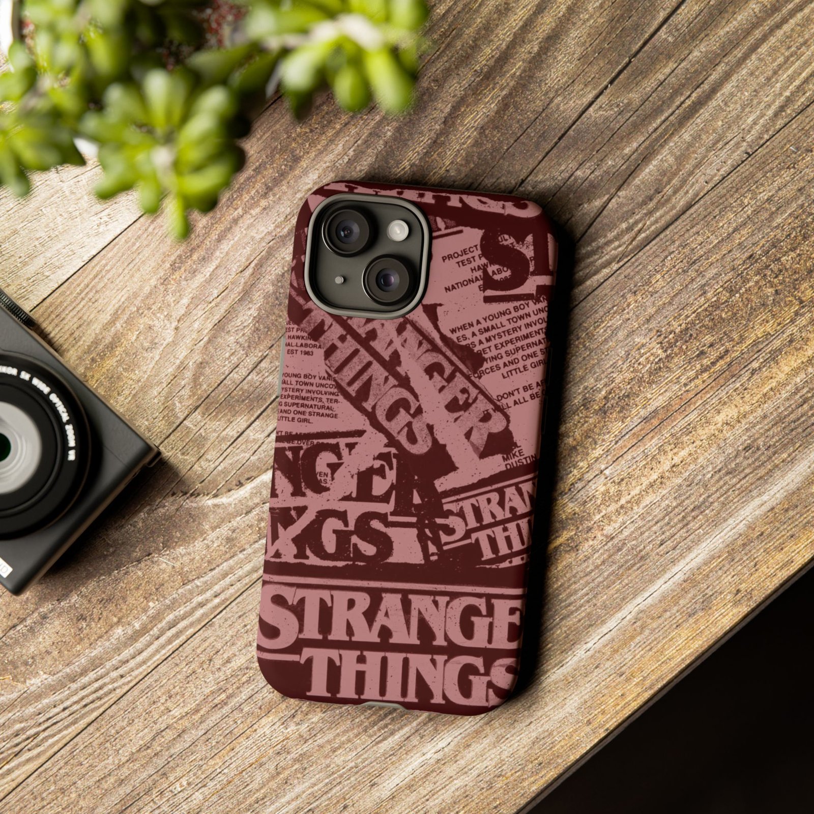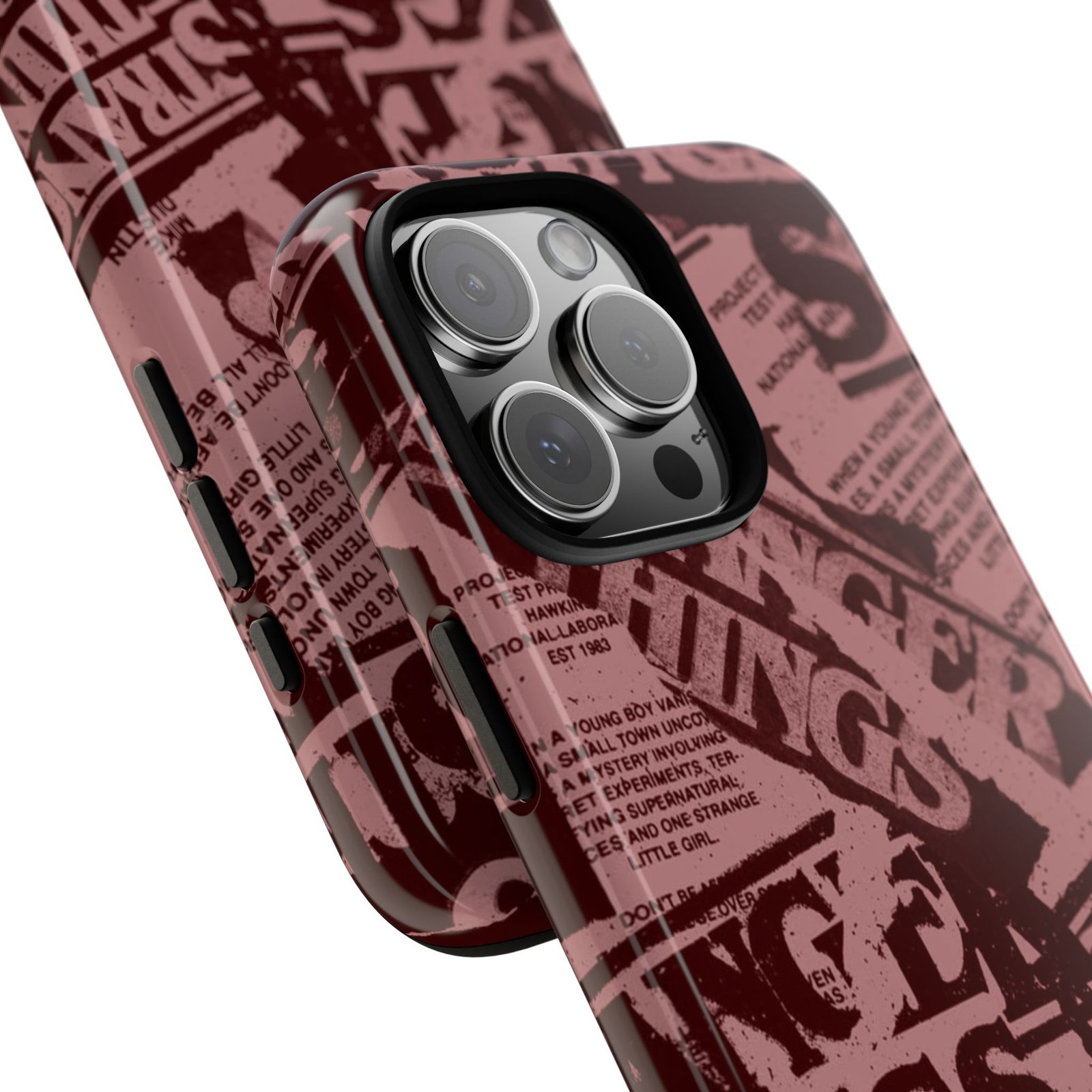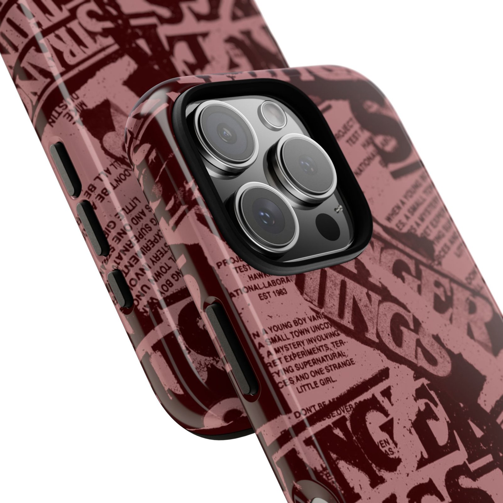 Phone Case — Retro ‘Strange Things’ Newspaper Collage (Burgundy)