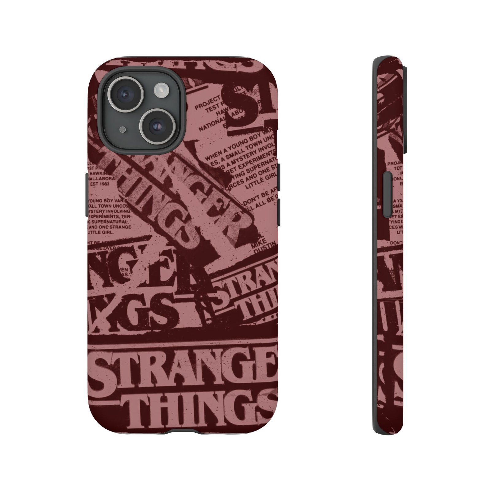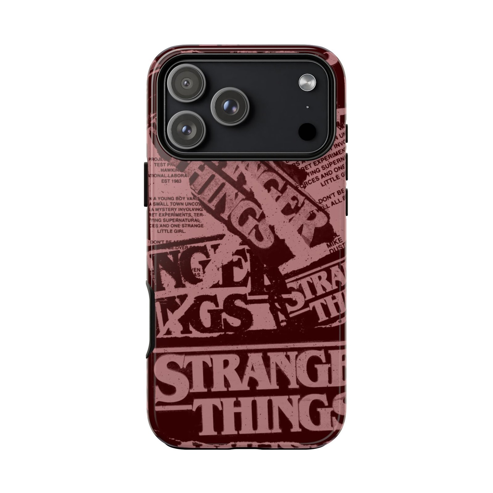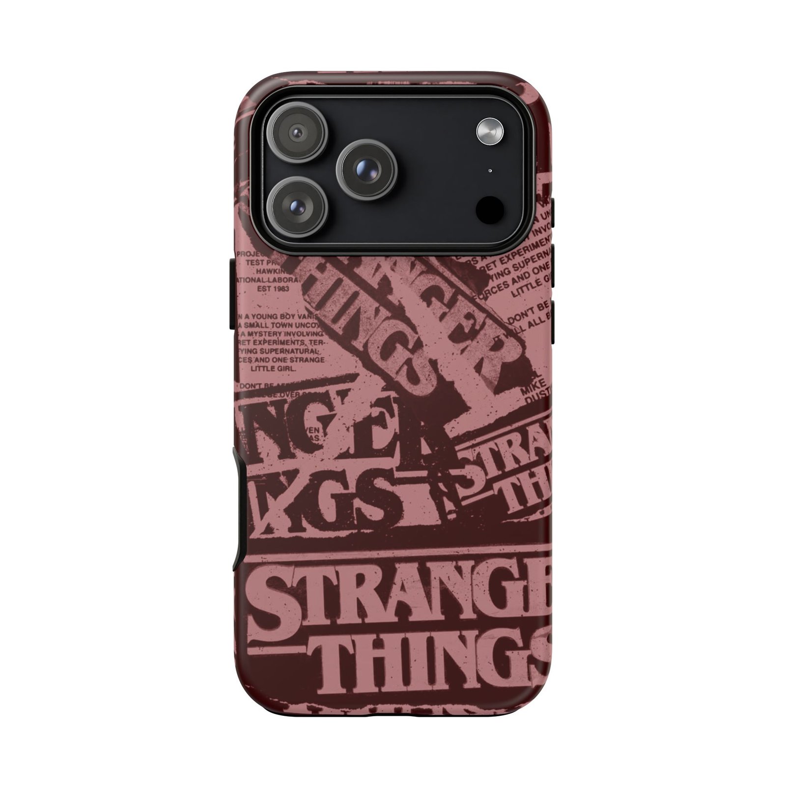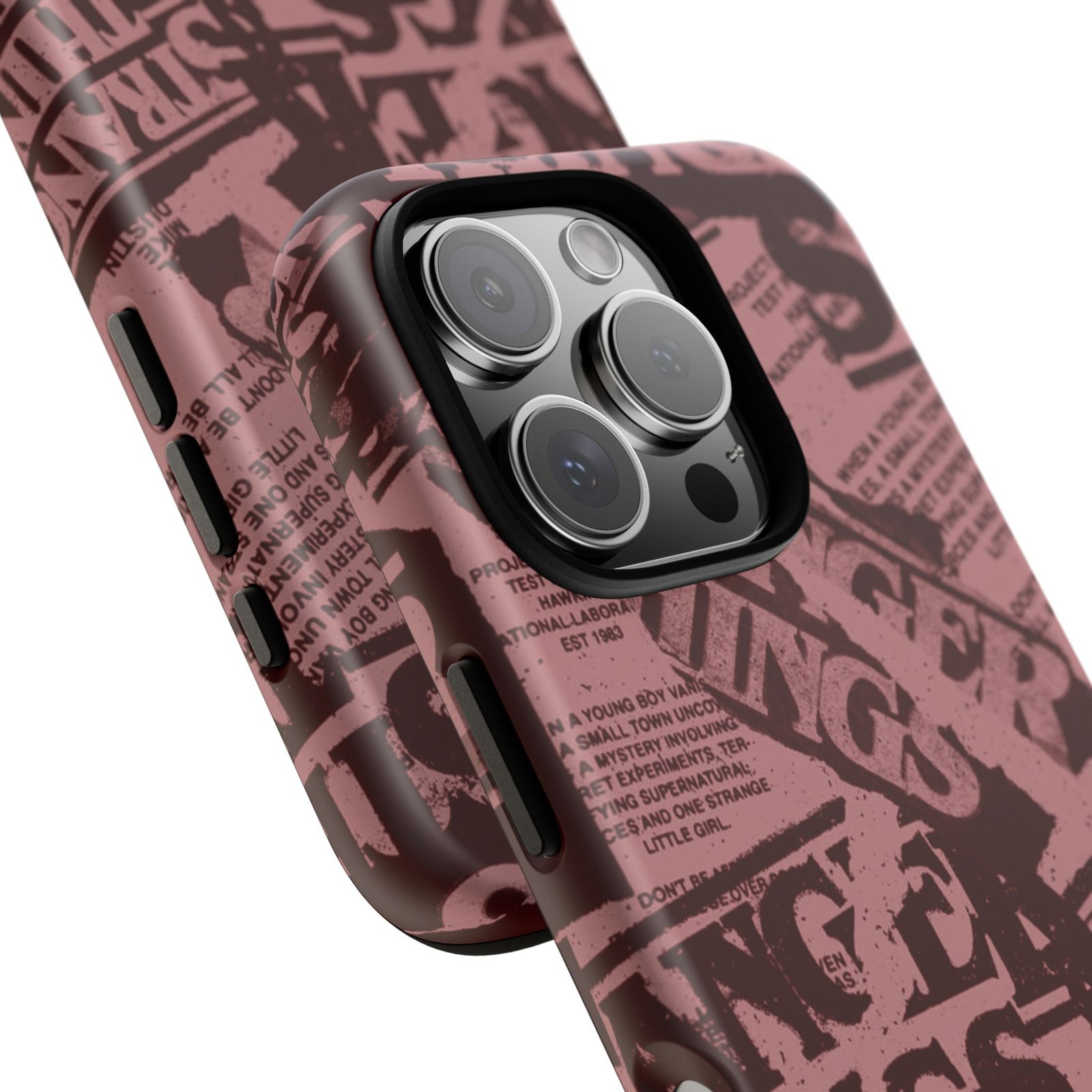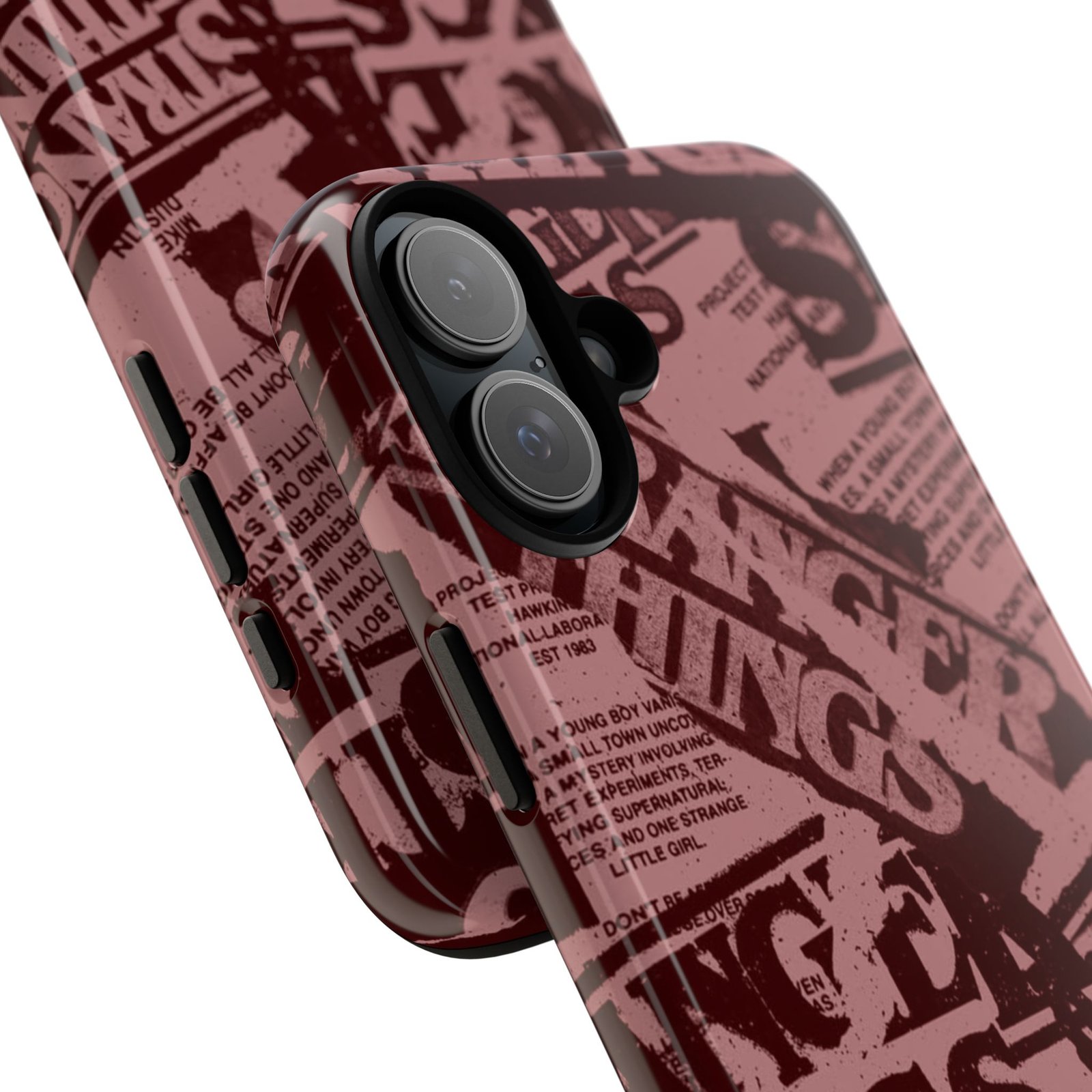 Phone Case — Retro ‘Strange Things’ Newspaper Collage (Burgundy)