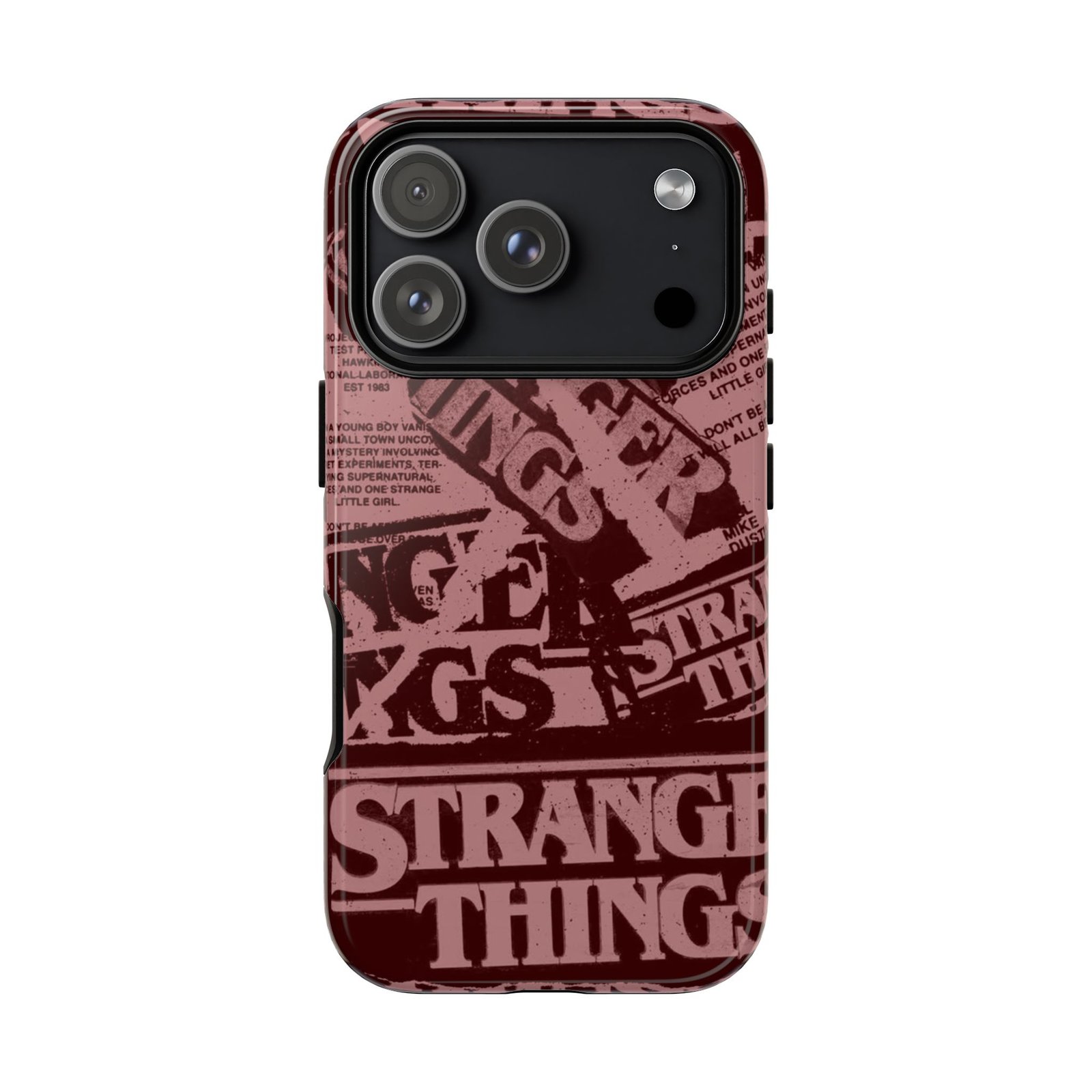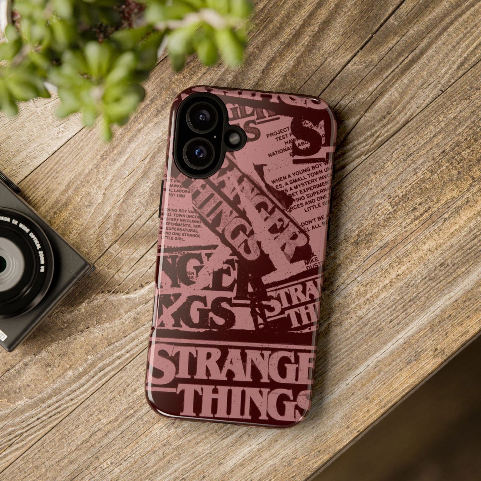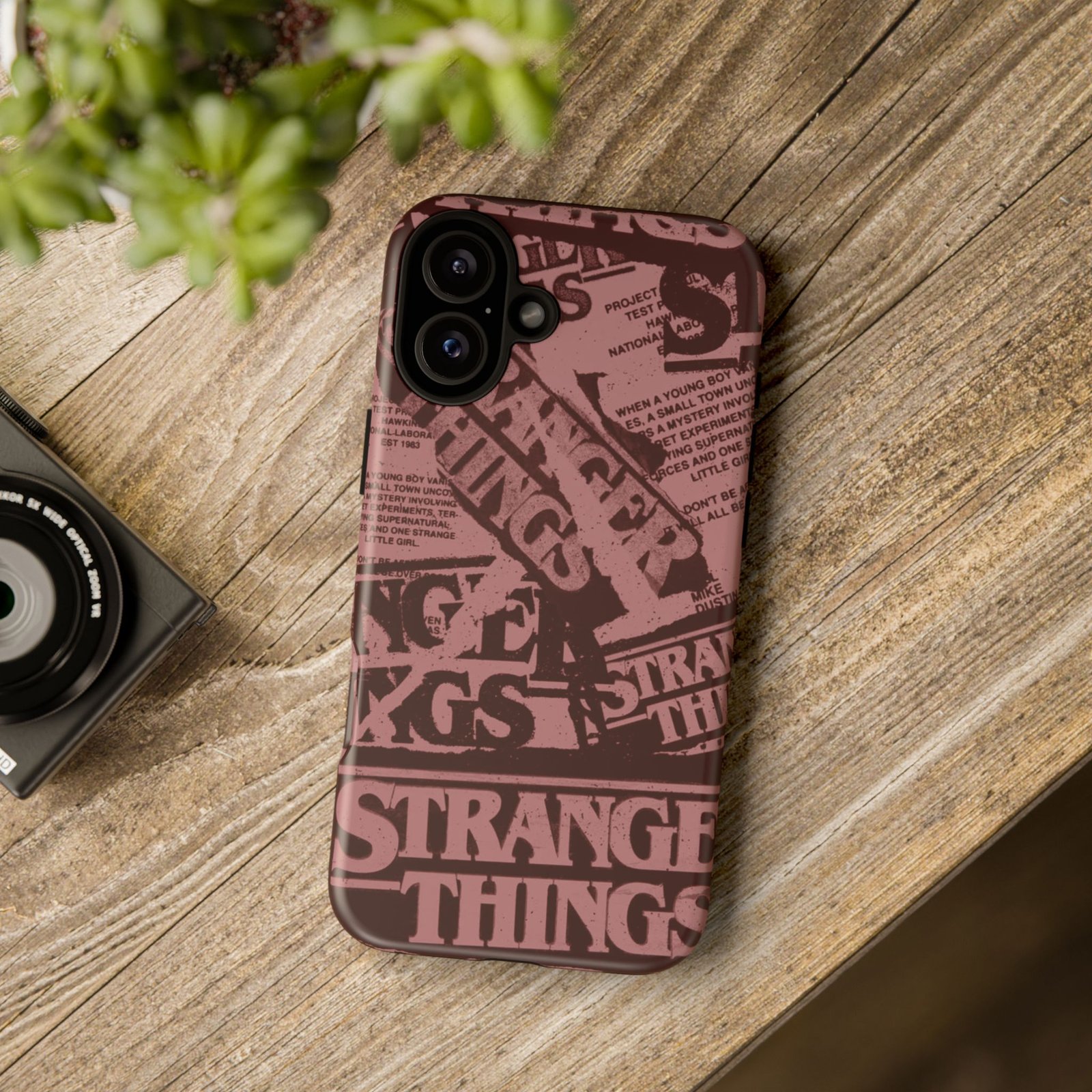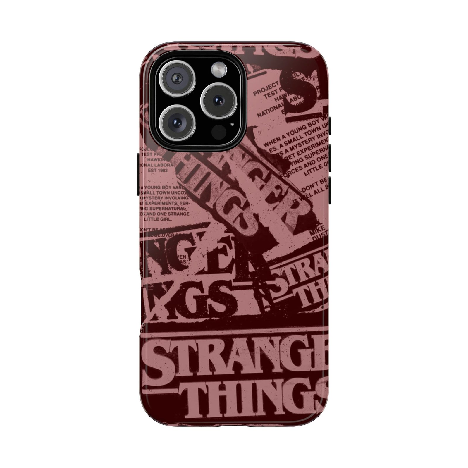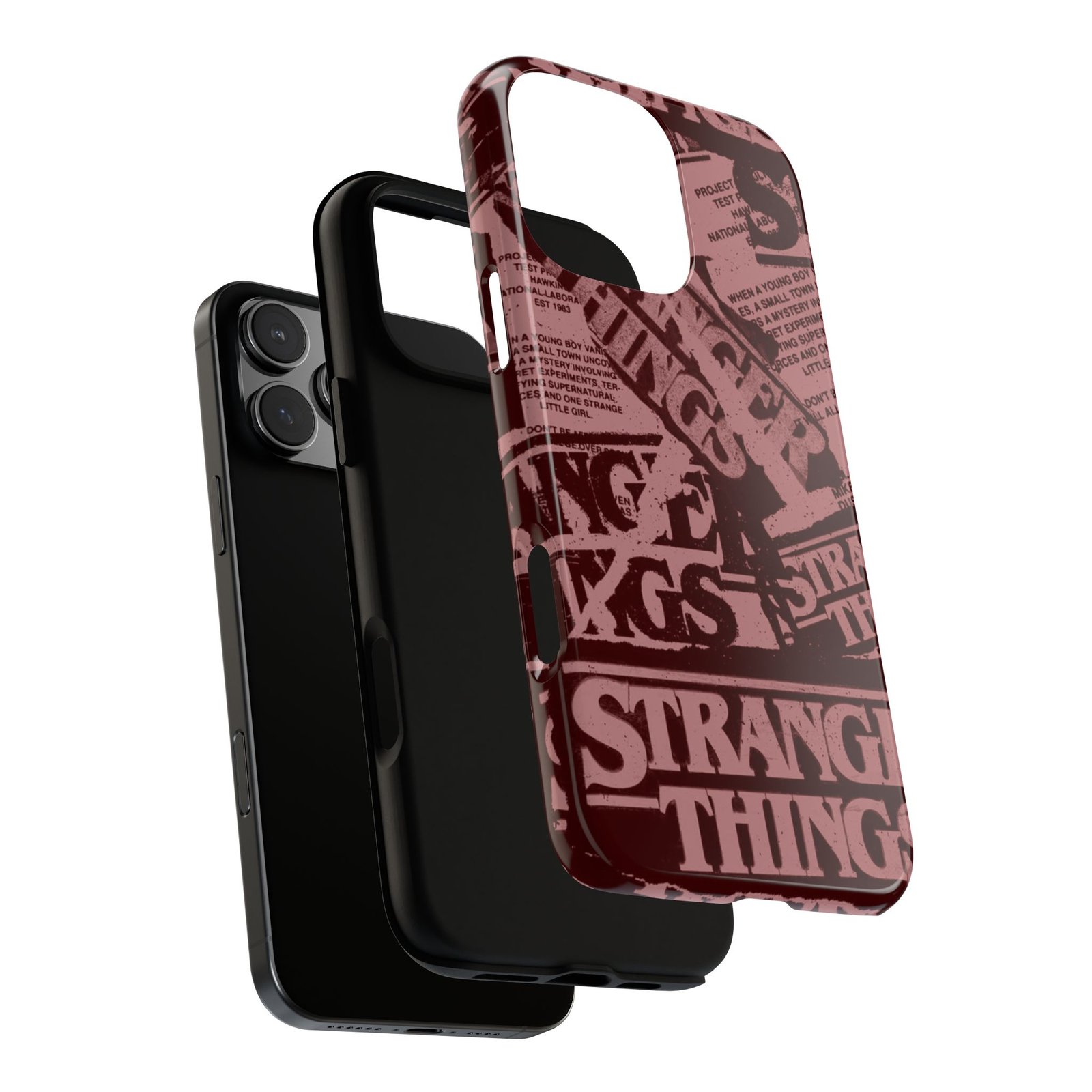 Phone Case — Retro ‘Strange Things’ Newspaper Collage (Burgundy)