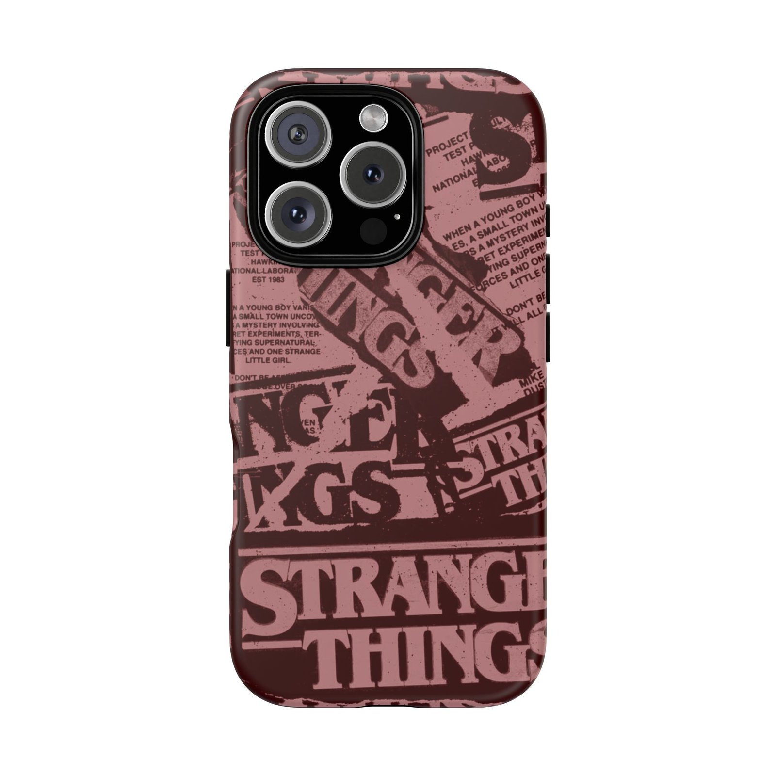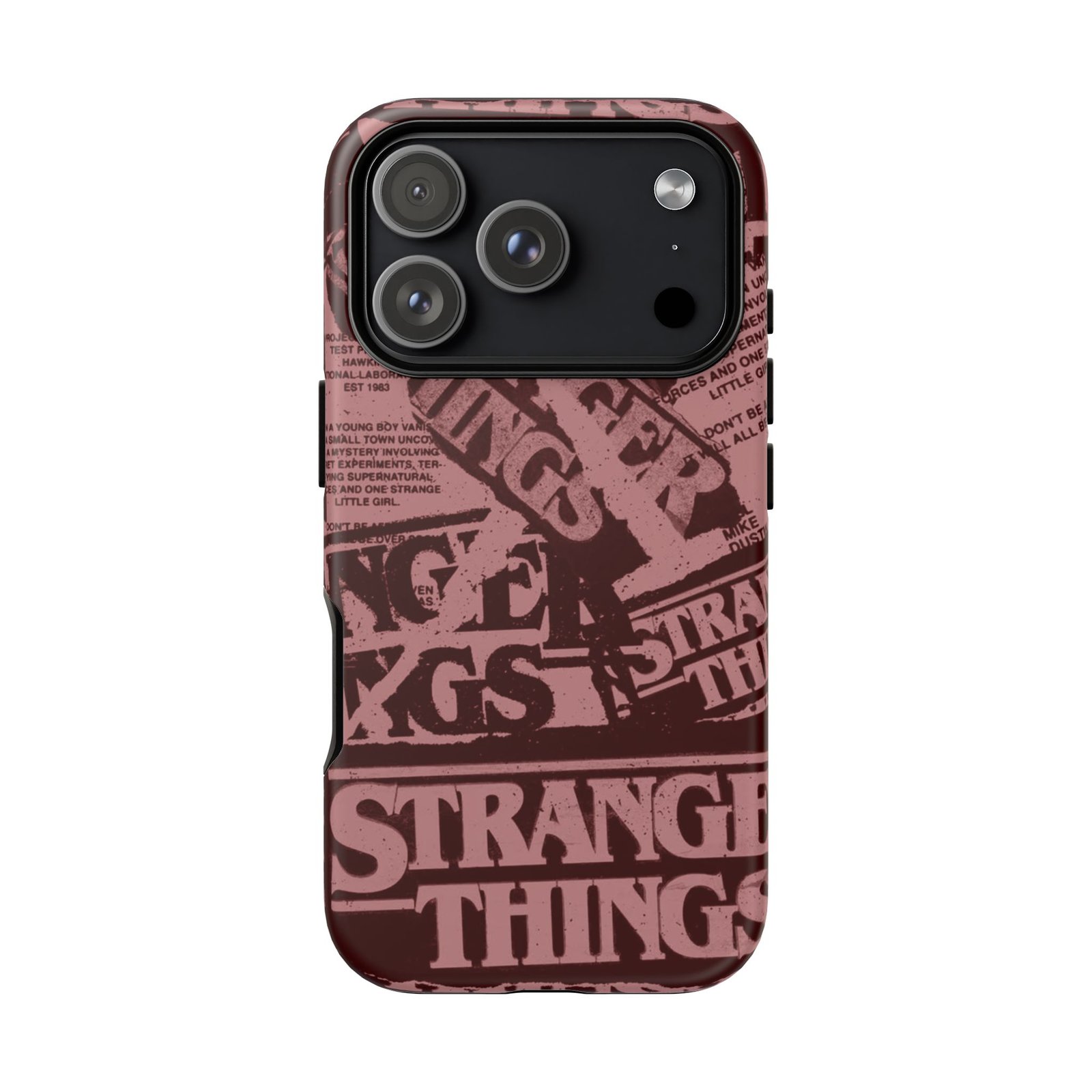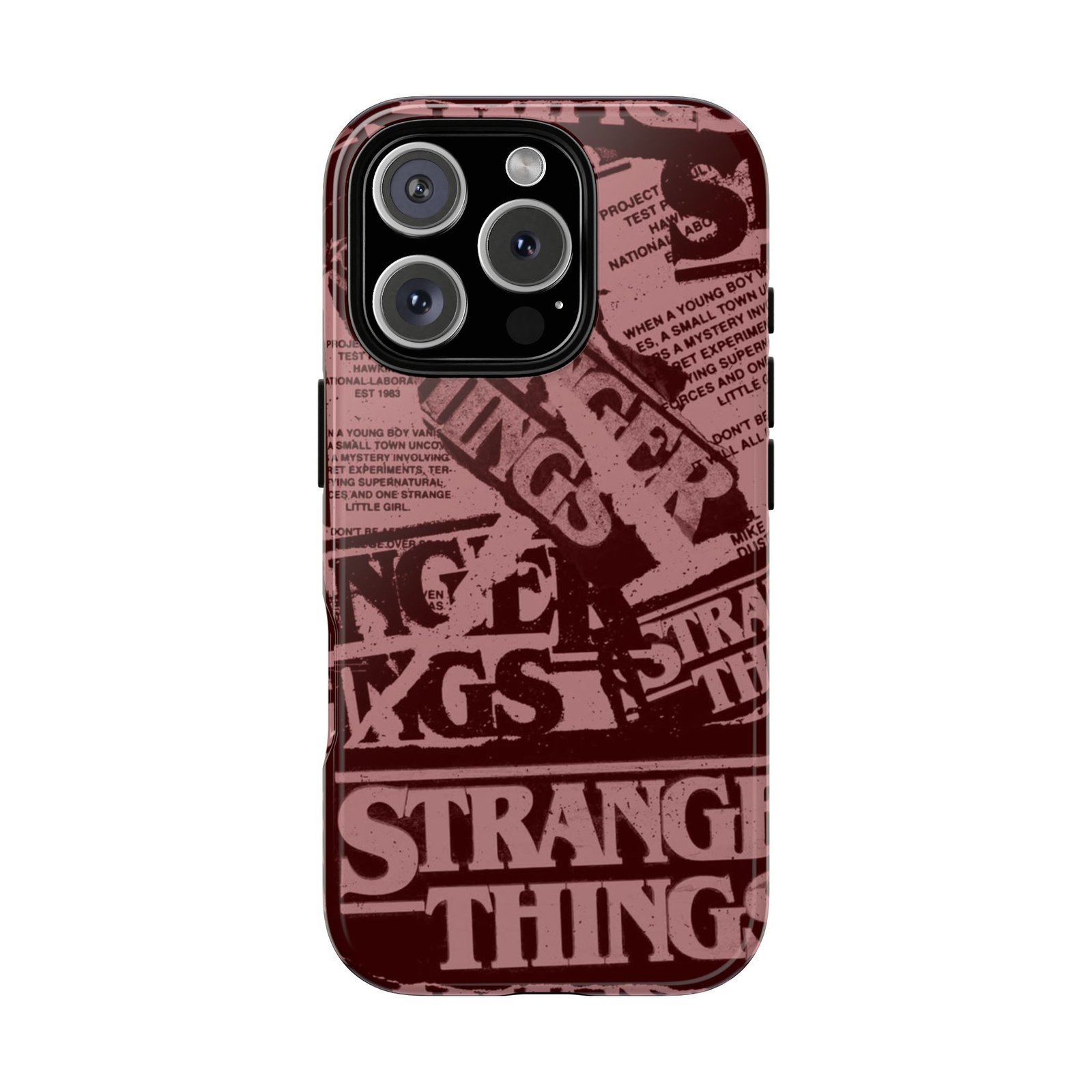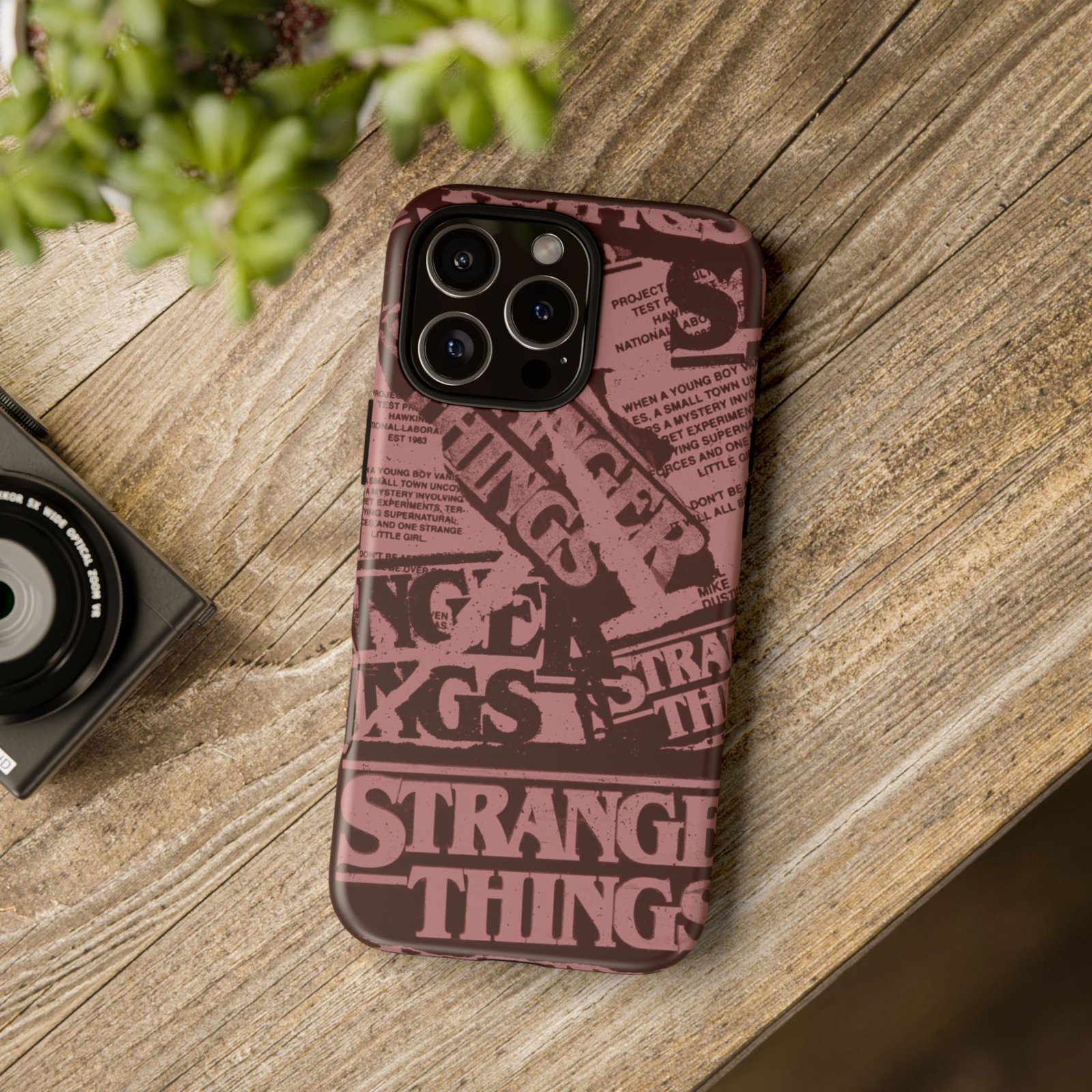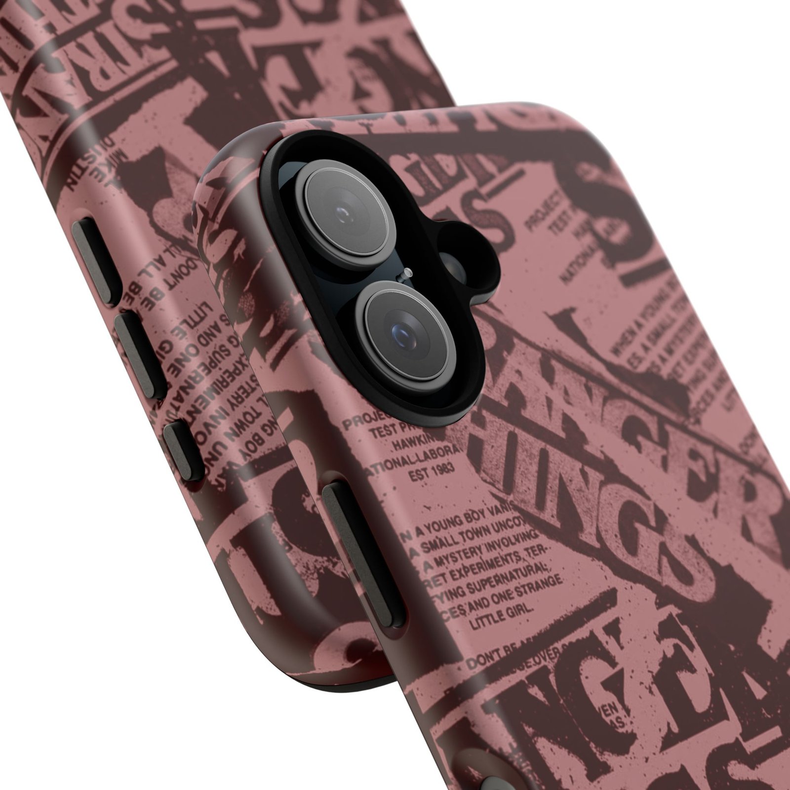 Phone Case — Retro ‘Strange Things’ Newspaper Collage (Burgundy)
