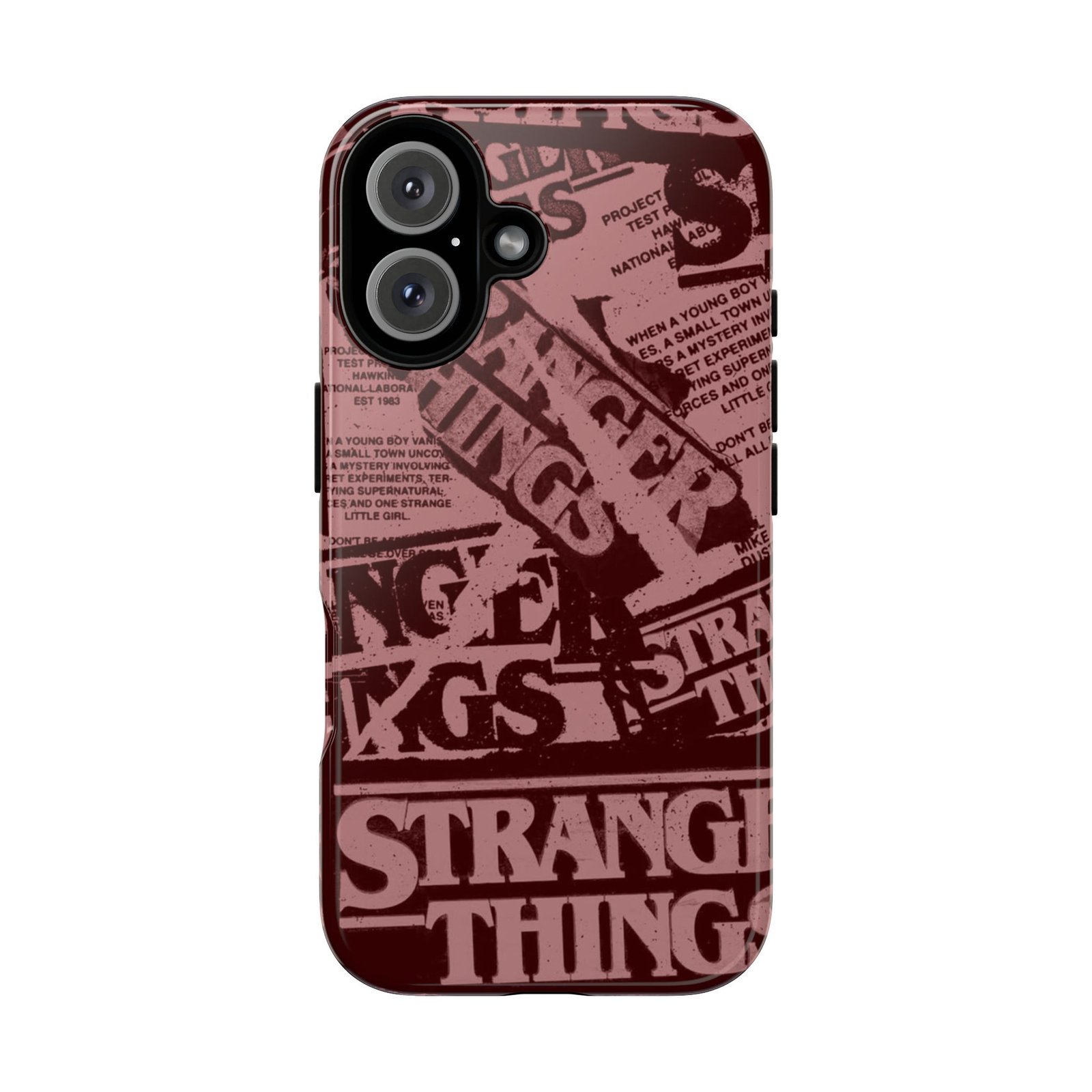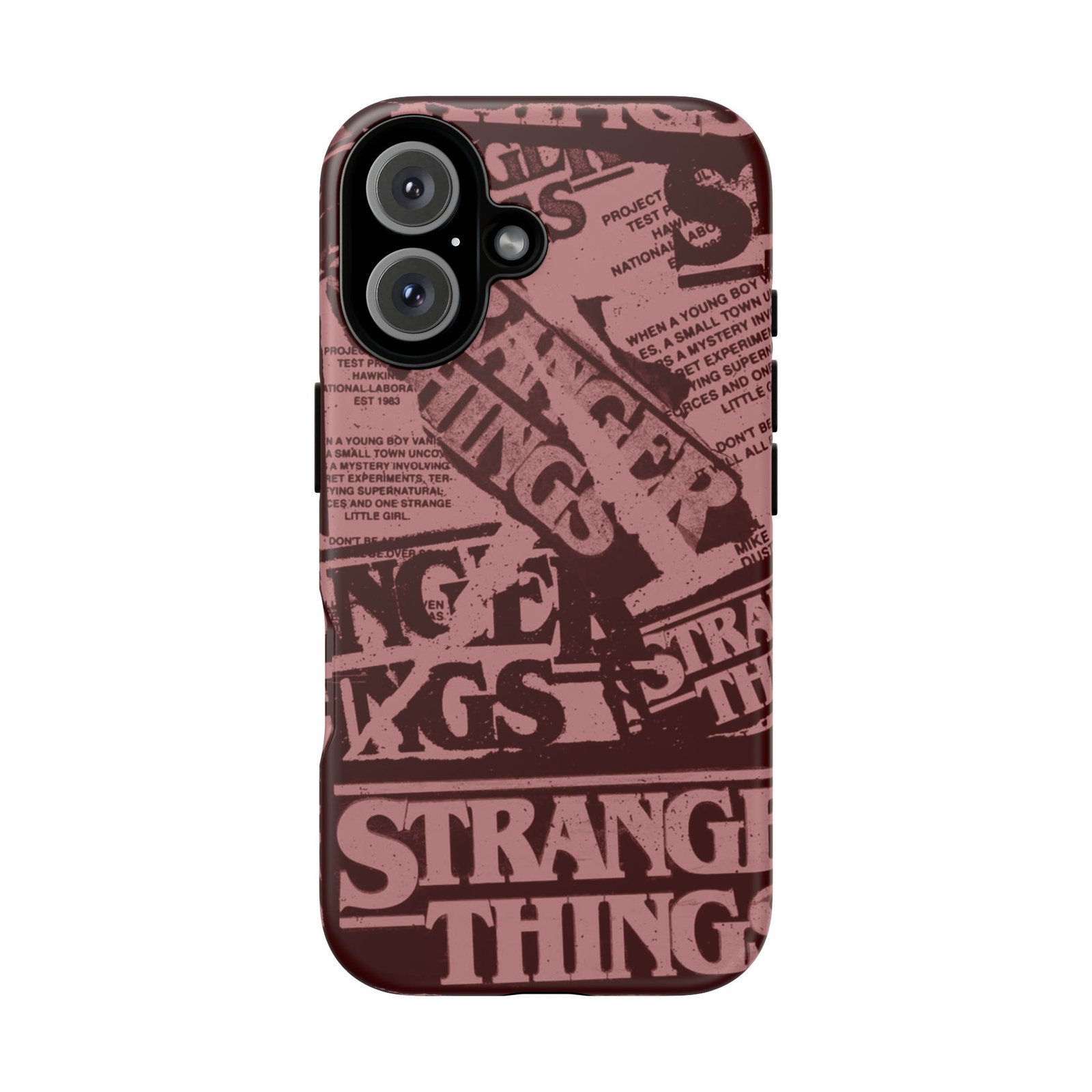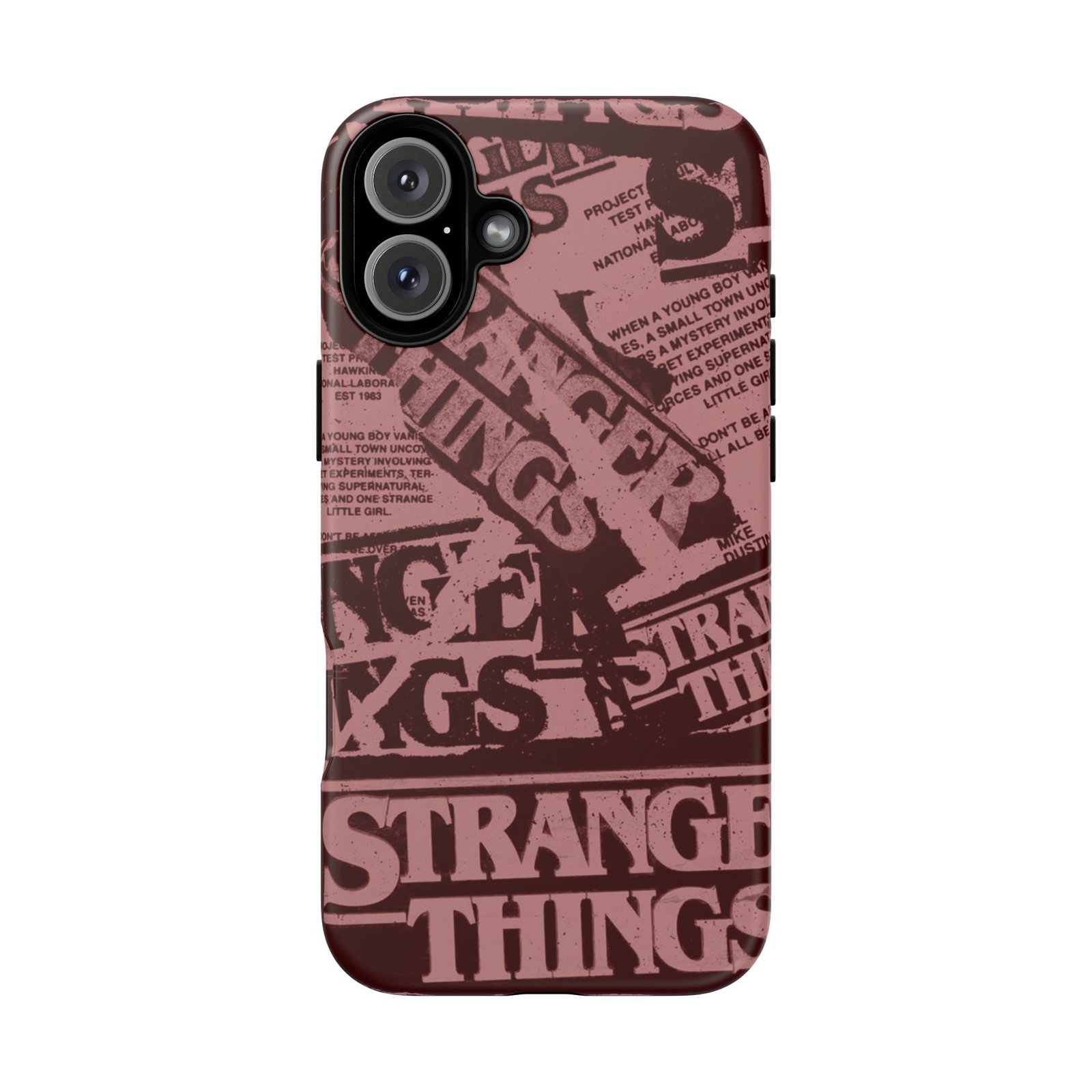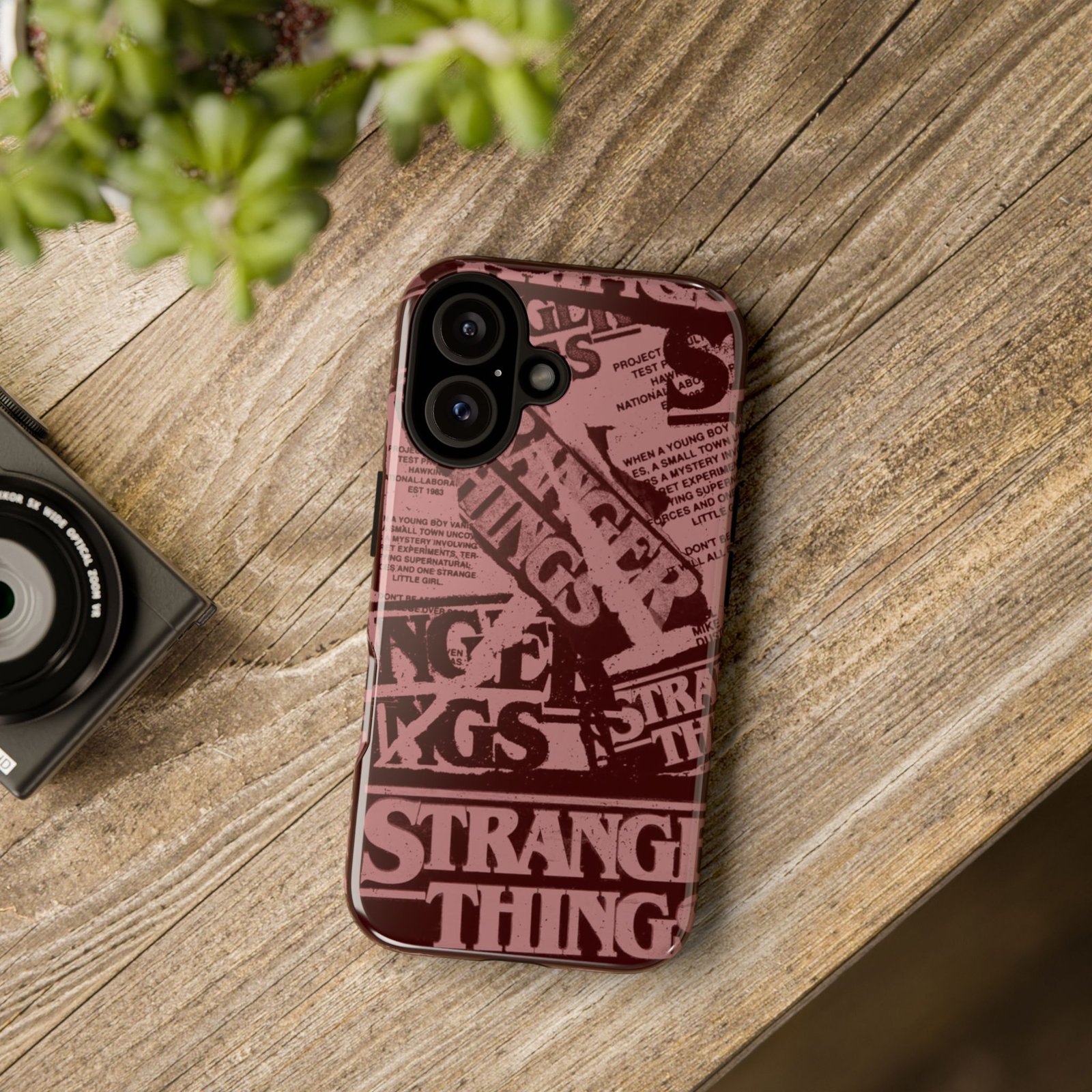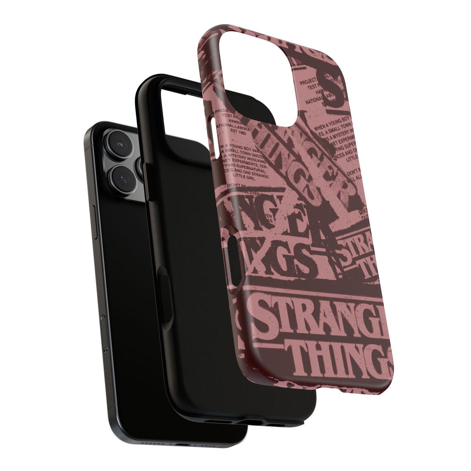 Phone Case — Retro ‘Strange Things’ Newspaper Collage (Burgundy)