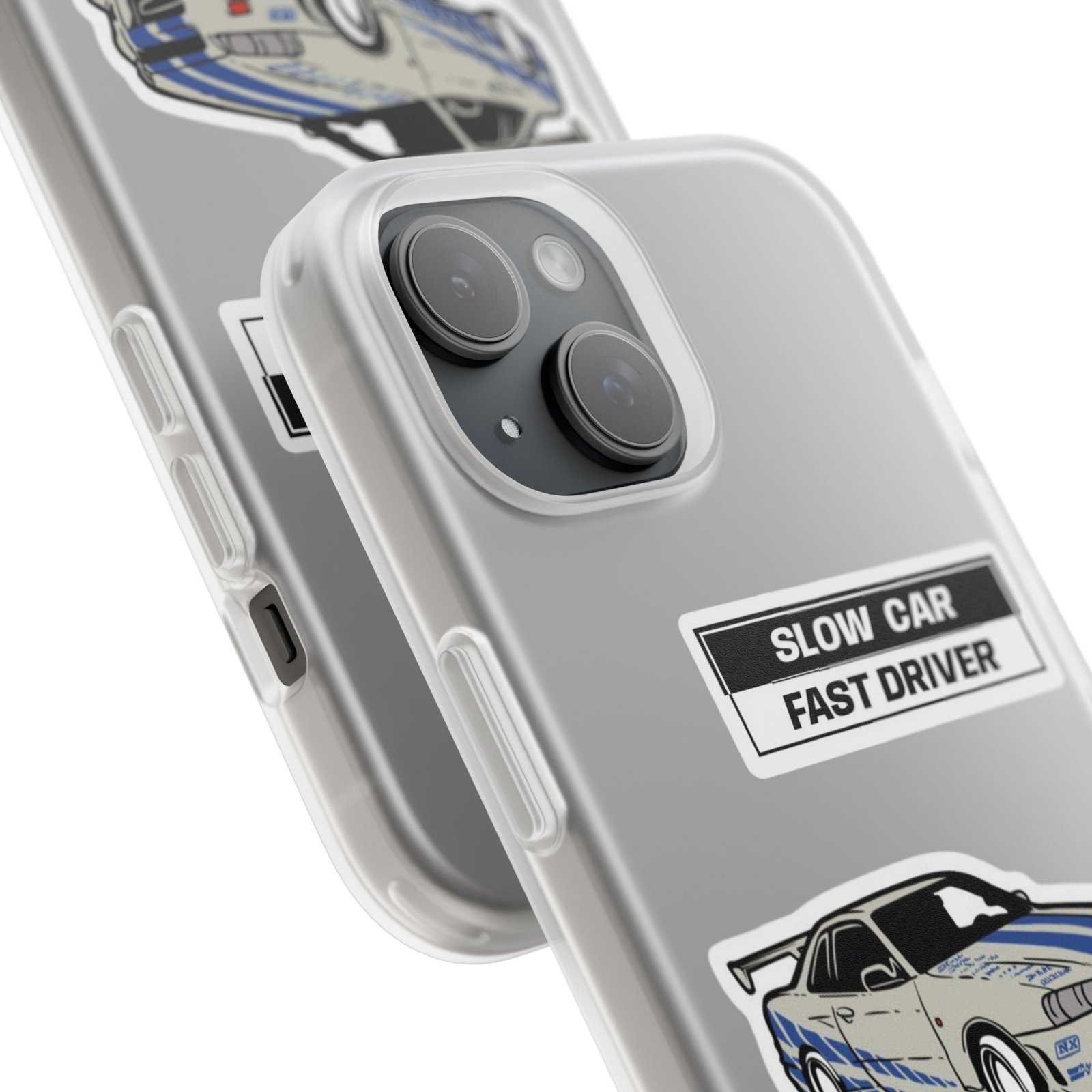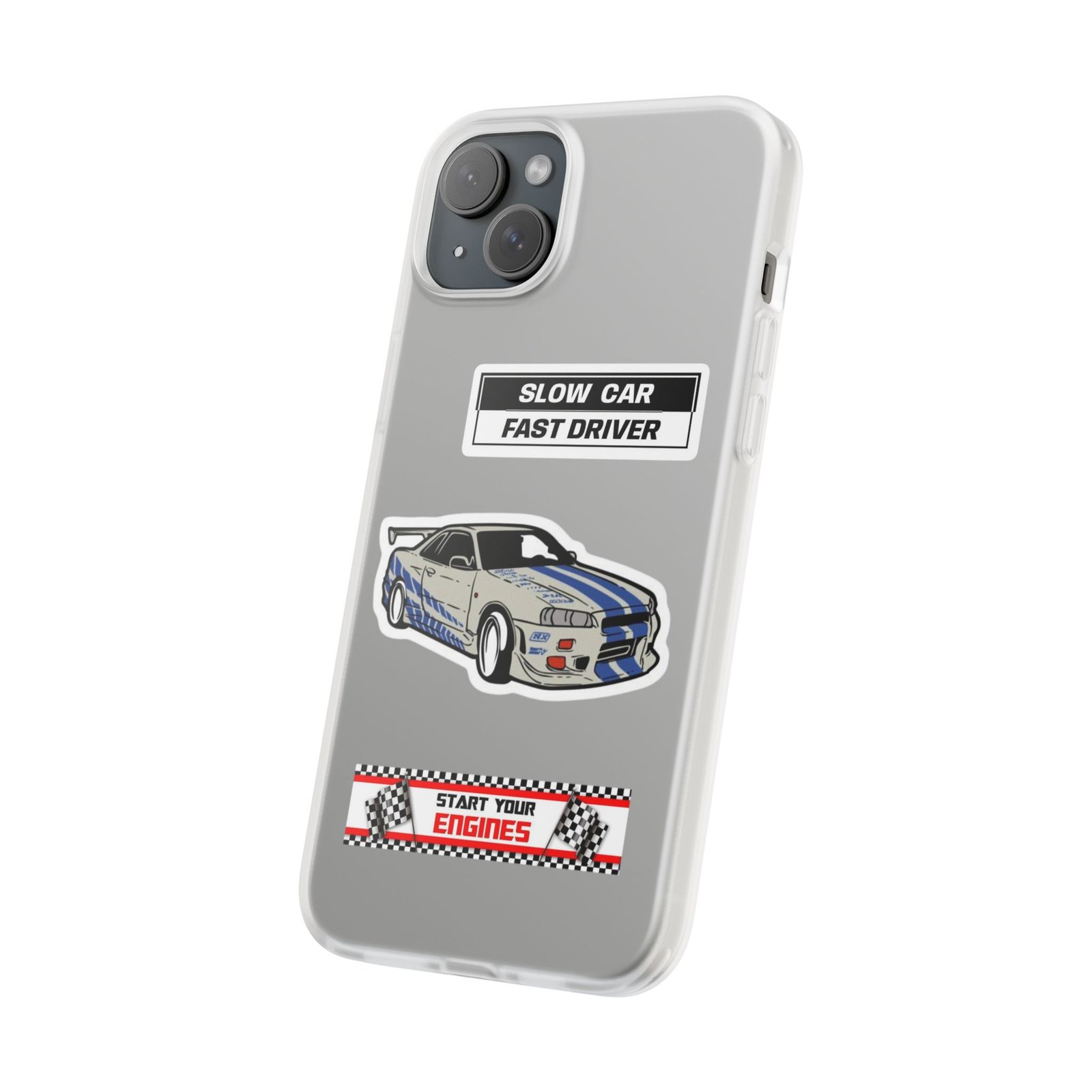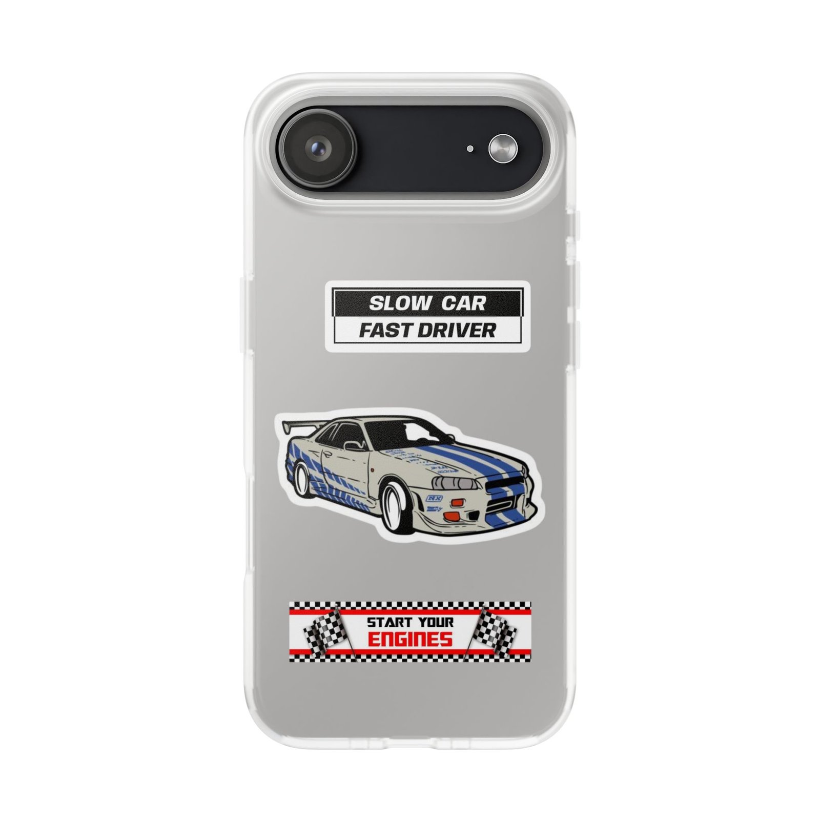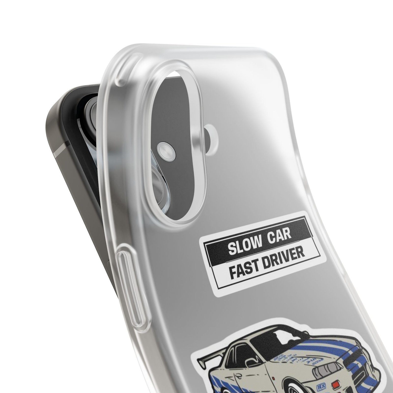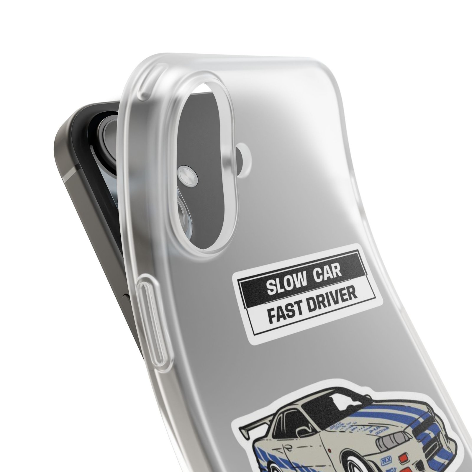 A slim, semi-transparent phone case designed for drivers and car lovers who want protection without bulk. The matte frosted TPU shell wraps snugly around your phone, absorbing shocks and resisting tears while keeping a low profile. Crisp, automotive-inspired graphics — a retro racing coupe and bold patch-style badges — peek through the translucent finish for a subtle, street-ready look. Lightweight and flexible, it keeps ports accessible with precise cutouts and still supports wireless charging. Built to withstand daily knocks and long drives, it comes from South Korea with safety certifications and optional gift packaging.