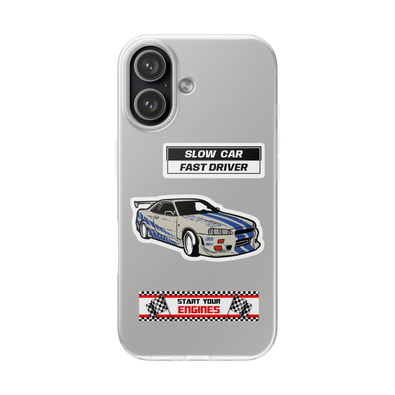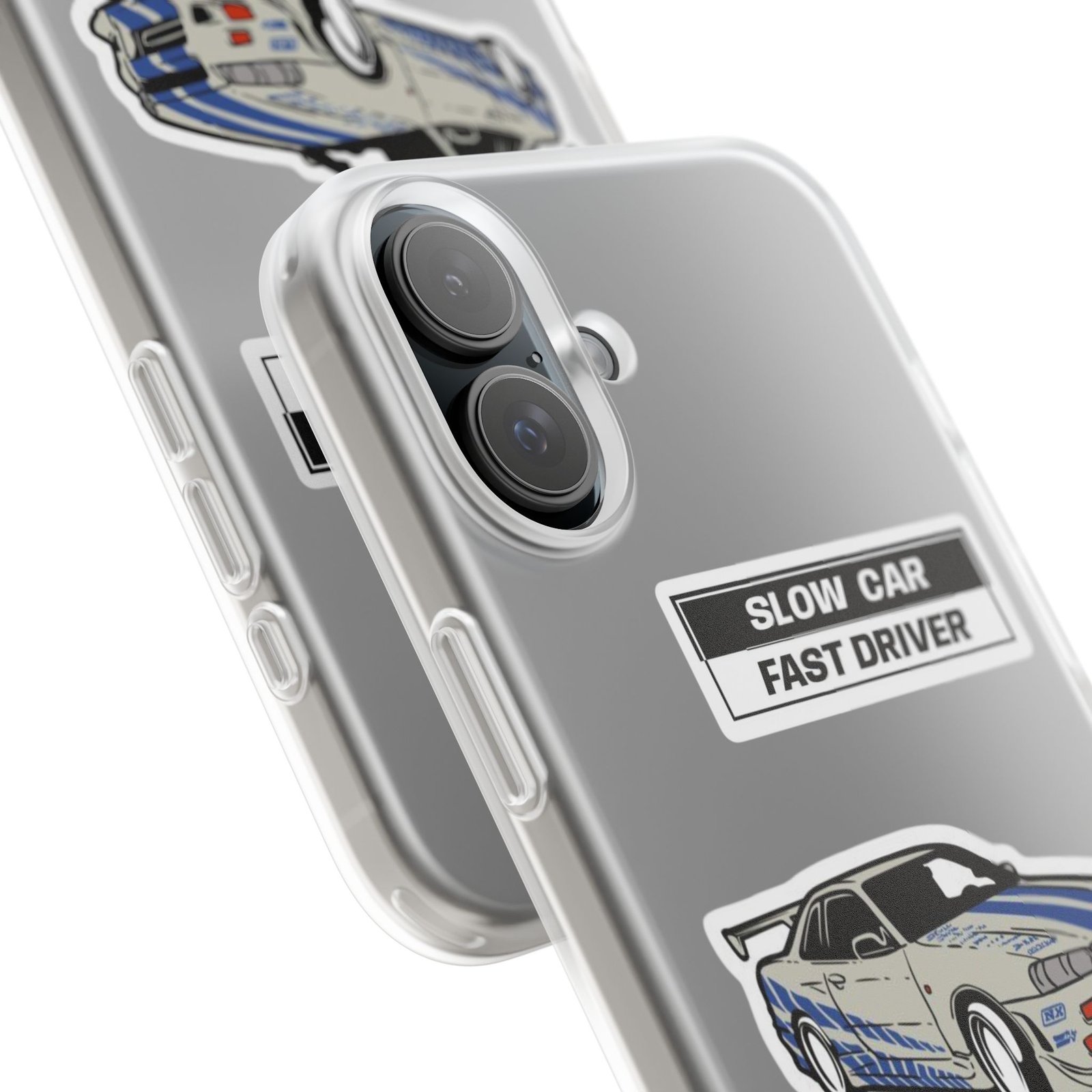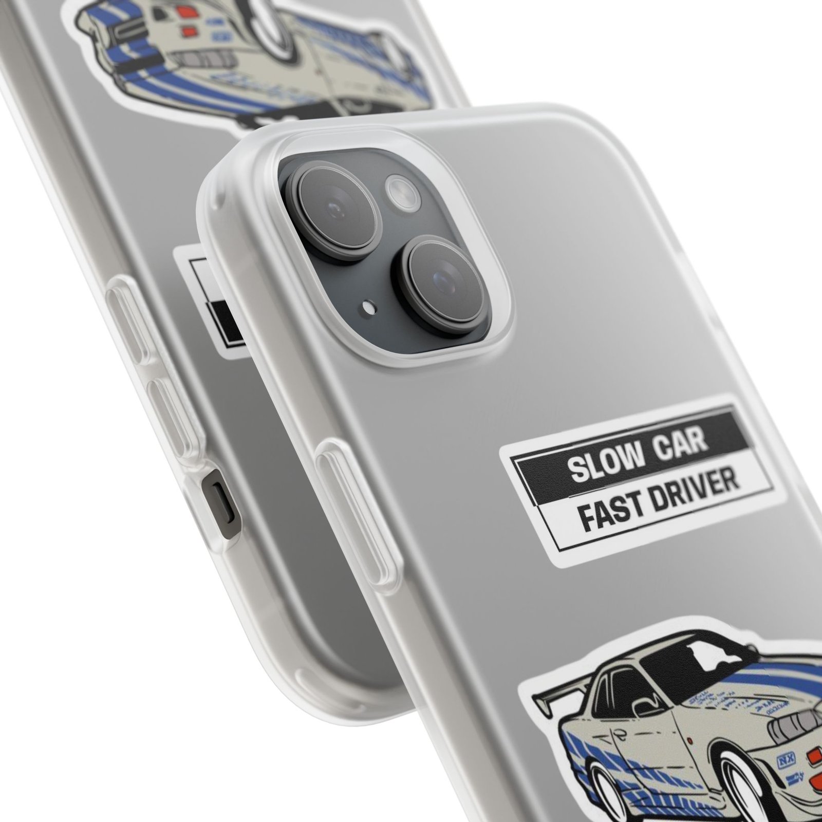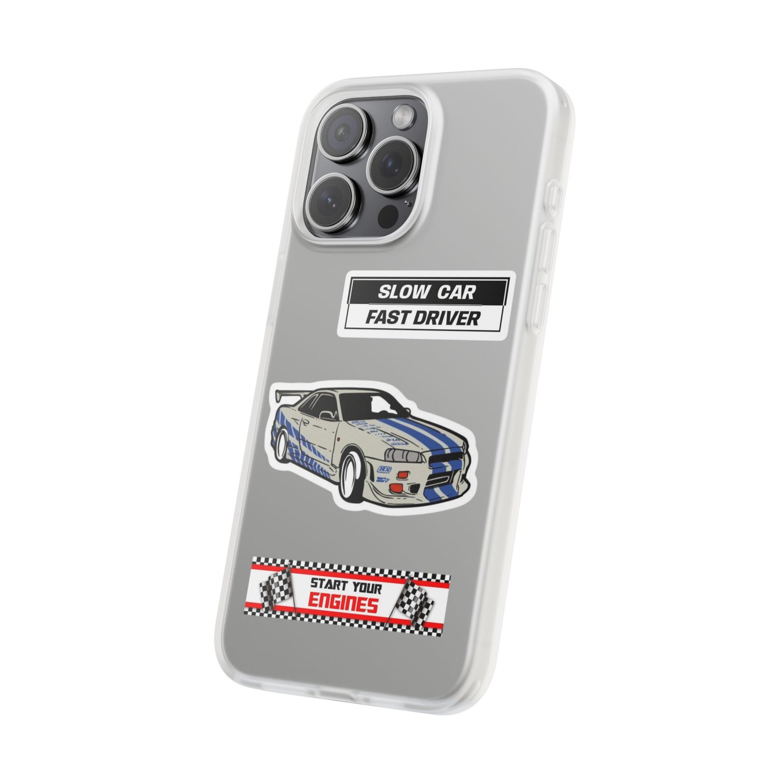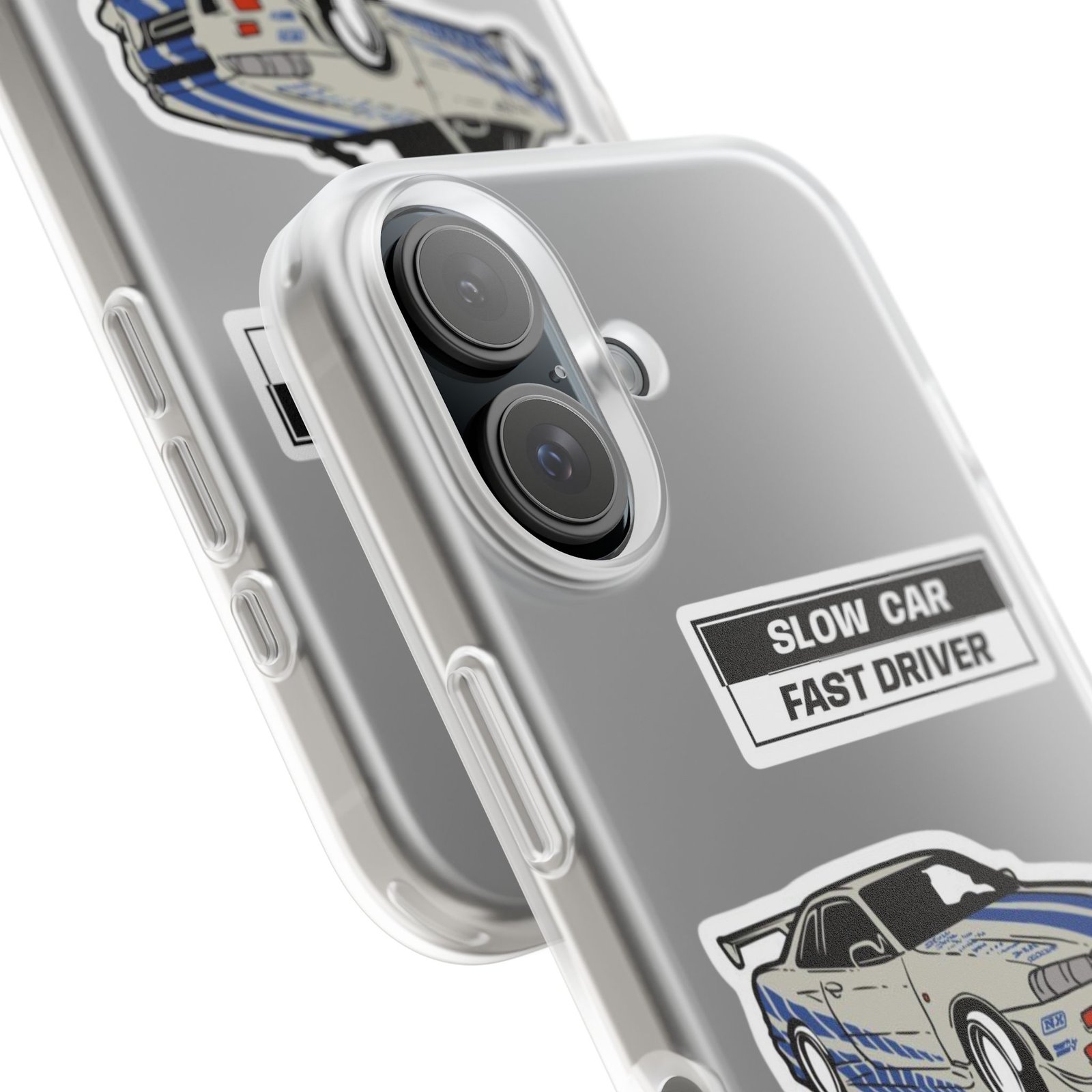 A slim, semi-transparent phone case designed for drivers and car lovers who want protection without bulk. The matte frosted TPU shell wraps snugly around your phone, absorbing shocks and resisting tears while keeping a low profile. Crisp, automotive-inspired graphics — a retro racing coupe and bold patch-style badges — peek through the translucent finish for a subtle, street-ready look. Lightweight and flexible, it keeps ports accessible with precise cutouts and still supports wireless charging. Built to withstand daily knocks and long drives, it comes from South Korea with safety certifications and optional gift packaging.