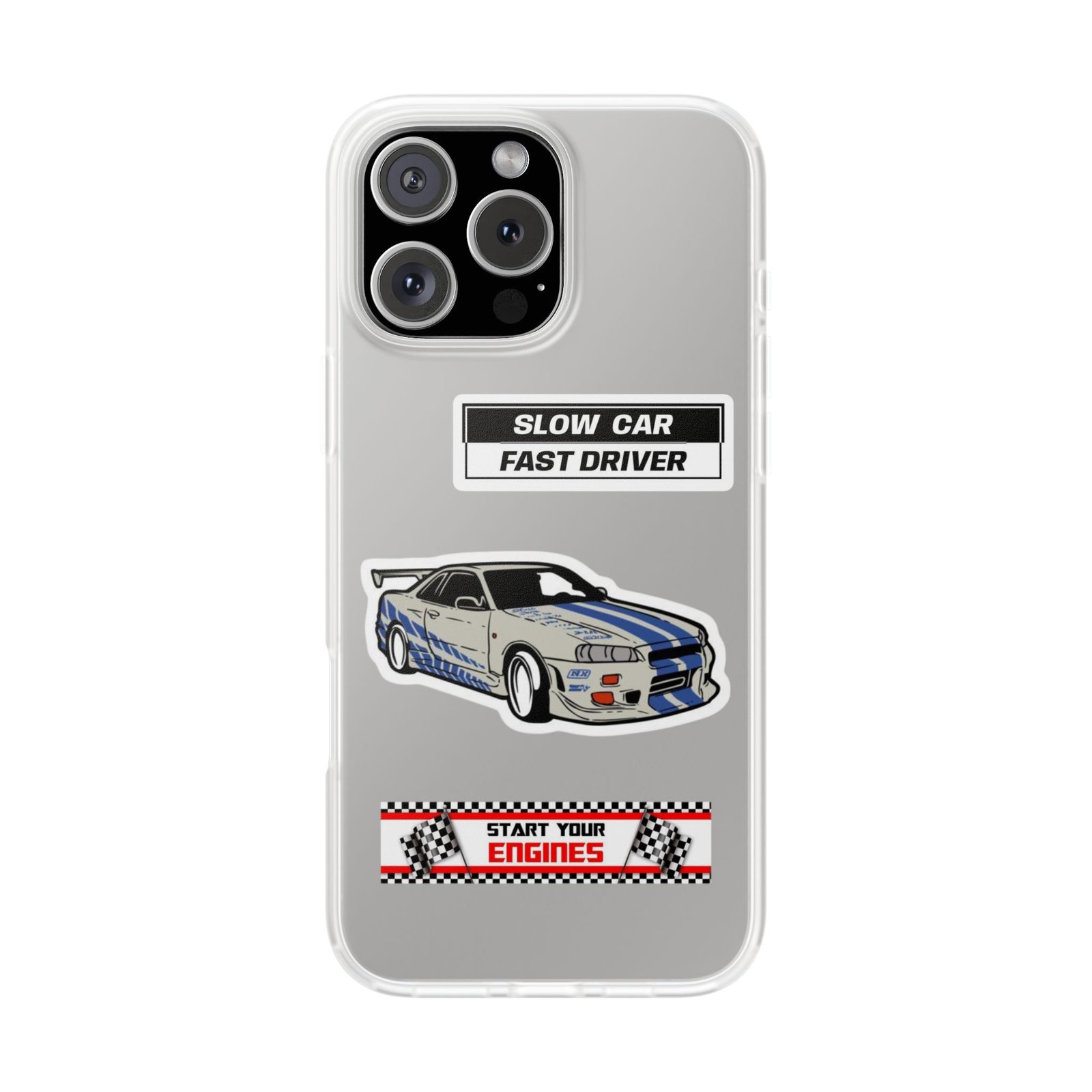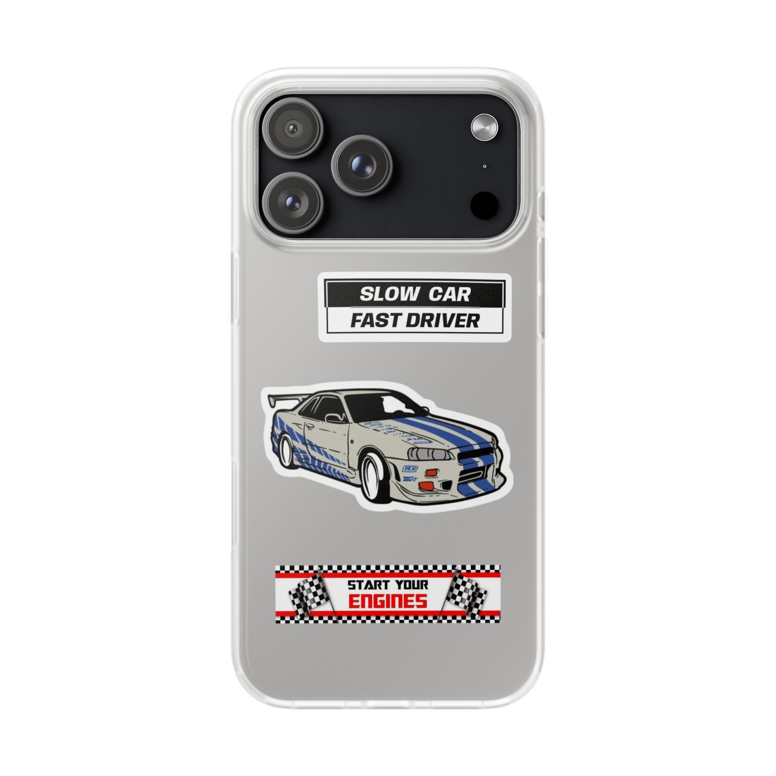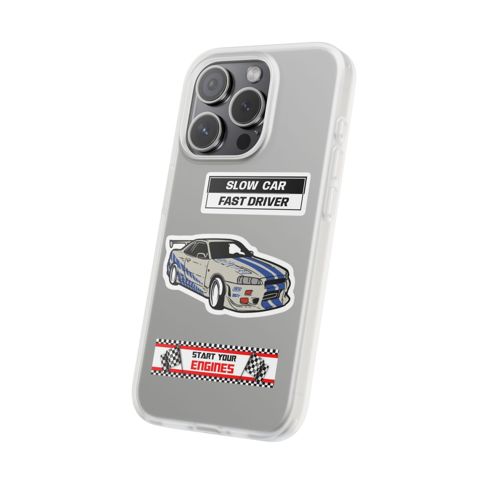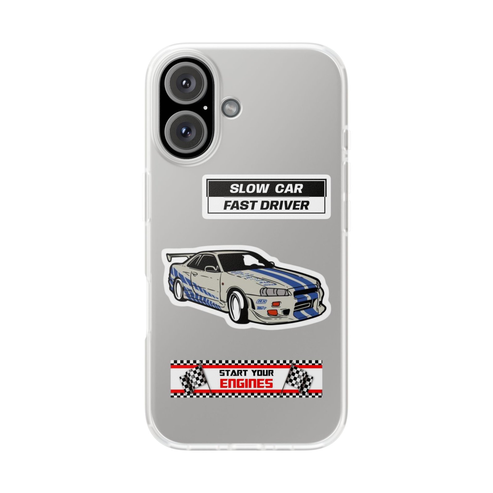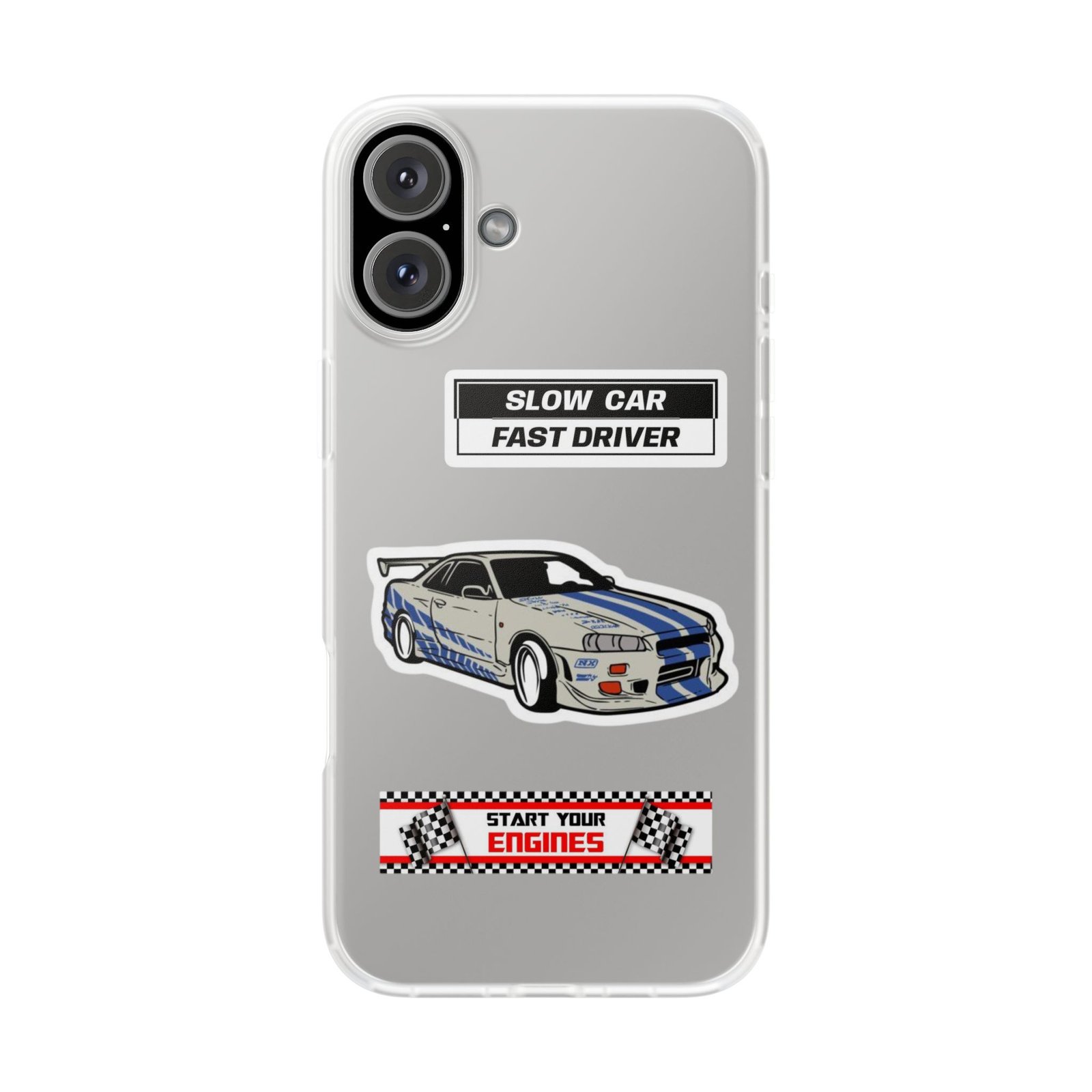 A slim, semi-transparent phone case designed for drivers and car lovers who want protection without bulk. The matte frosted TPU shell wraps snugly around your phone, absorbing shocks and resisting tears while keeping a low profile. Crisp, automotive-inspired graphics — a retro racing coupe and bold patch-style badges — peek through the translucent finish for a subtle, street-ready look. Lightweight and flexible, it keeps ports accessible with precise cutouts and still supports wireless charging. Built to withstand daily knocks and long drives, it comes from South Korea with safety certifications and optional gift packaging.