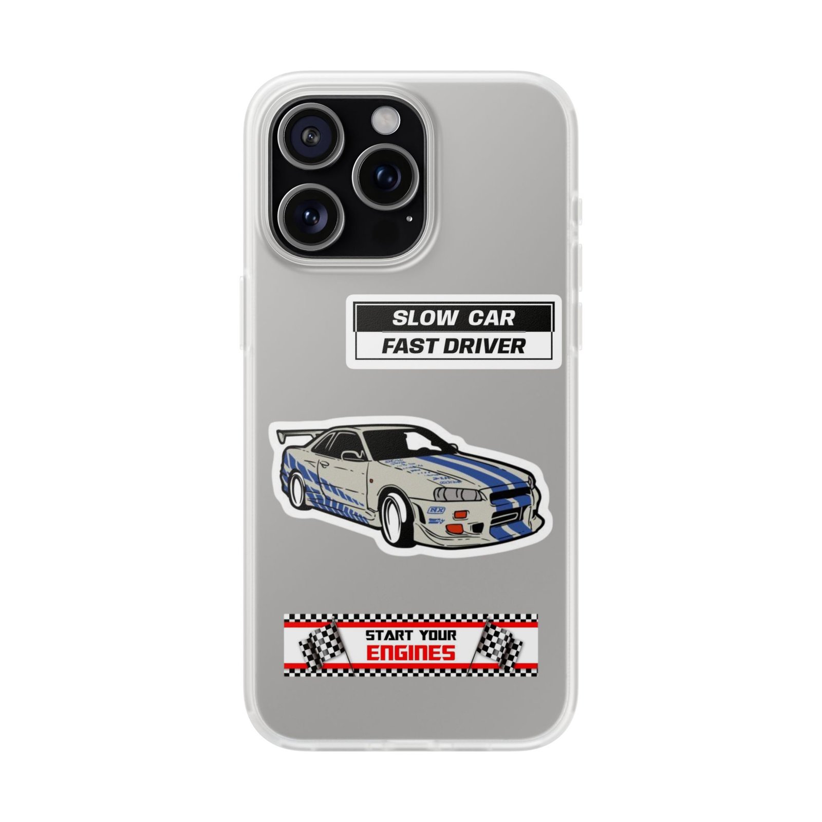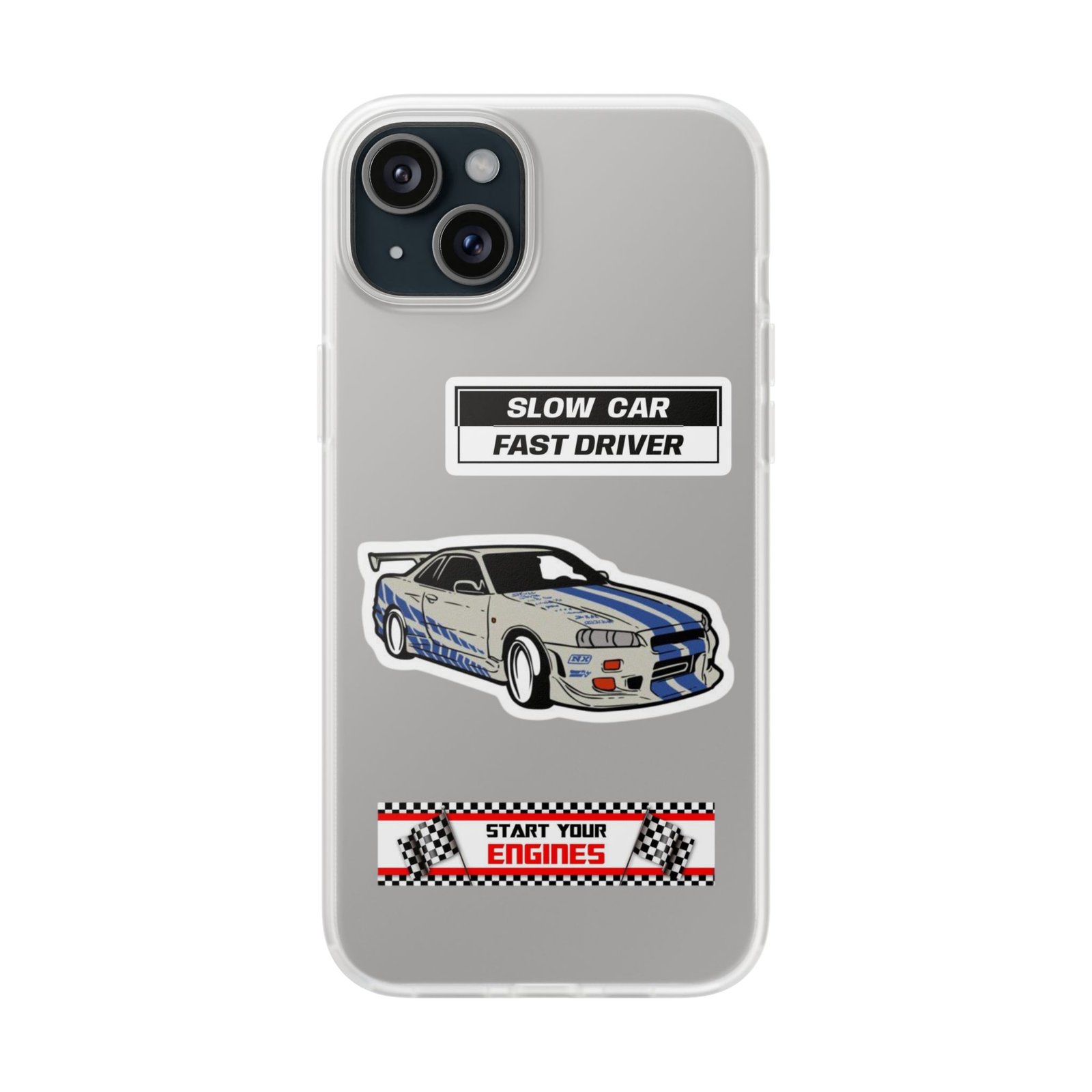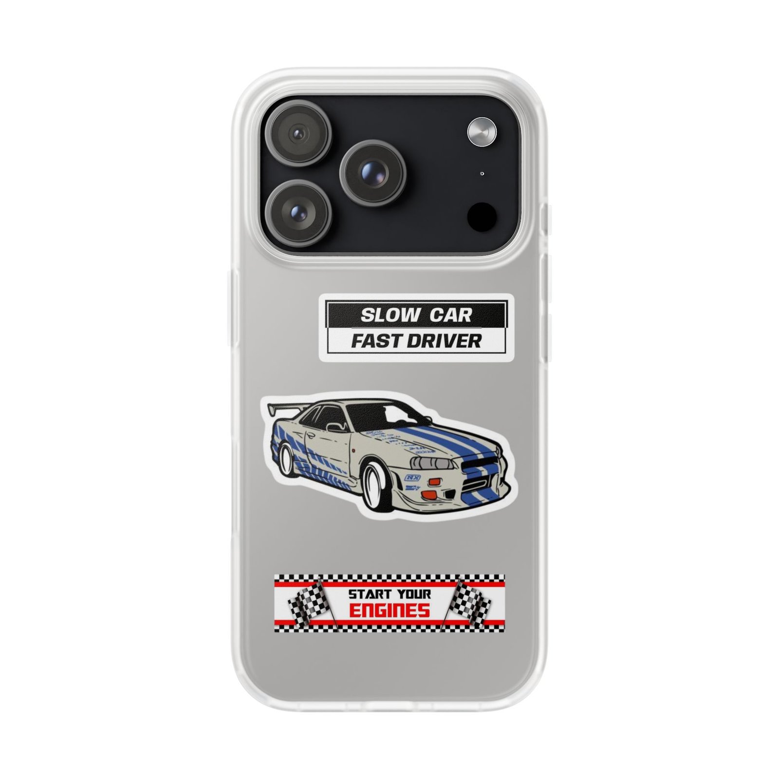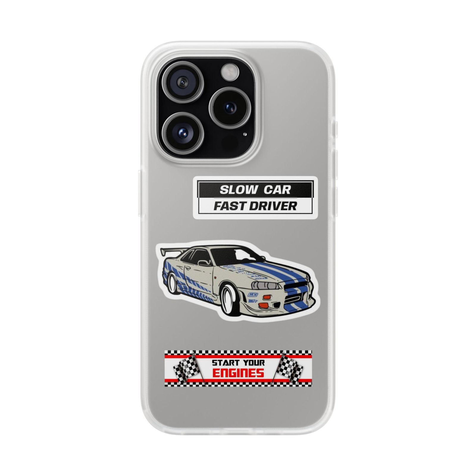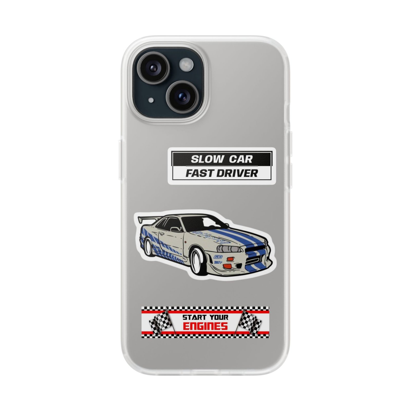 A slim, semi-transparent phone case designed for drivers and car lovers who want protection without bulk. The matte frosted TPU shell wraps snugly around your phone, absorbing shocks and resisting tears while keeping a low profile. Crisp, automotive-inspired graphics — a retro racing coupe and bold patch-style badges — peek through the translucent finish for a subtle, street-ready look. Lightweight and flexible, it keeps ports accessible with precise cutouts and still supports wireless charging. Built to withstand daily knocks and long drives, it comes from South Korea with safety certifications and optional gift packaging.