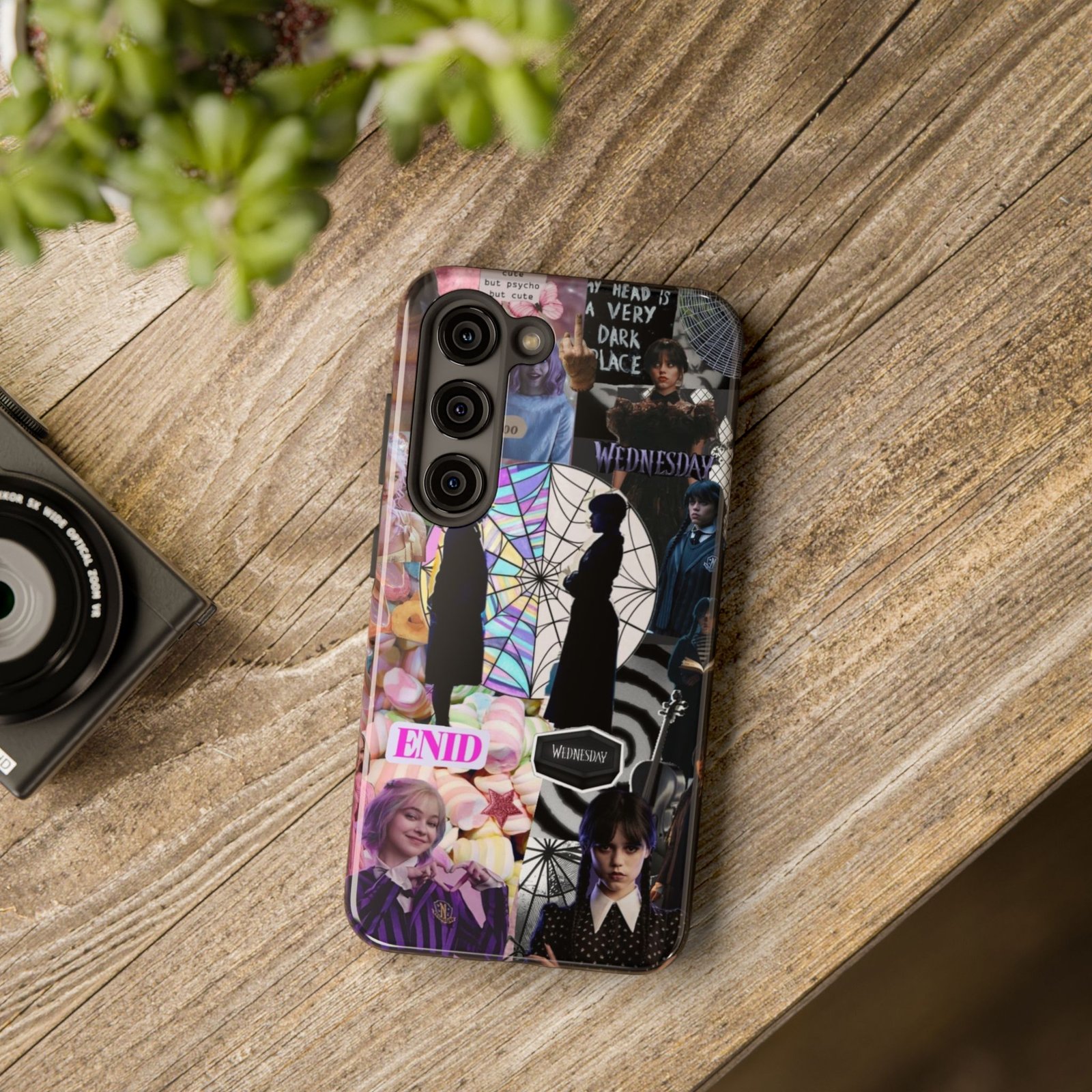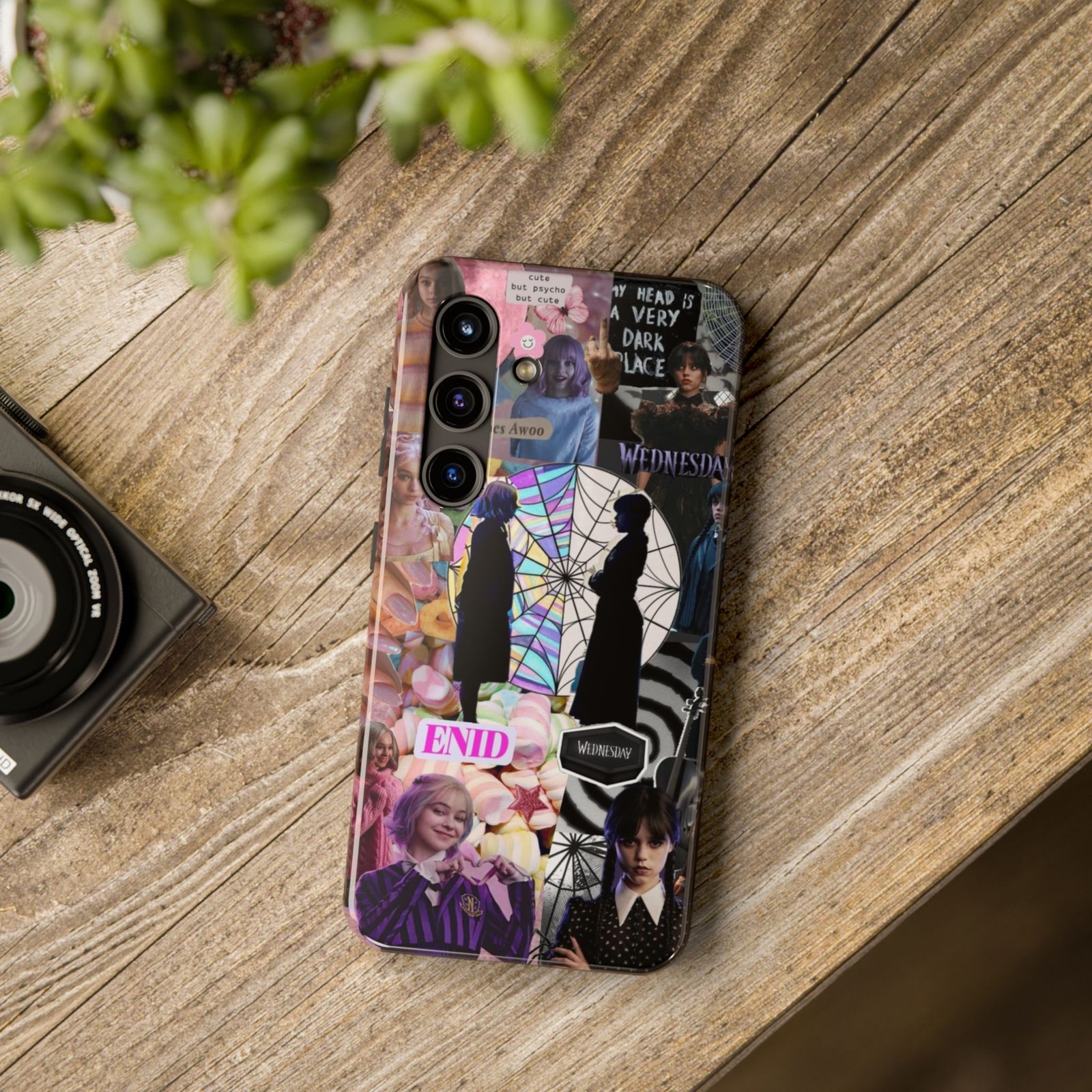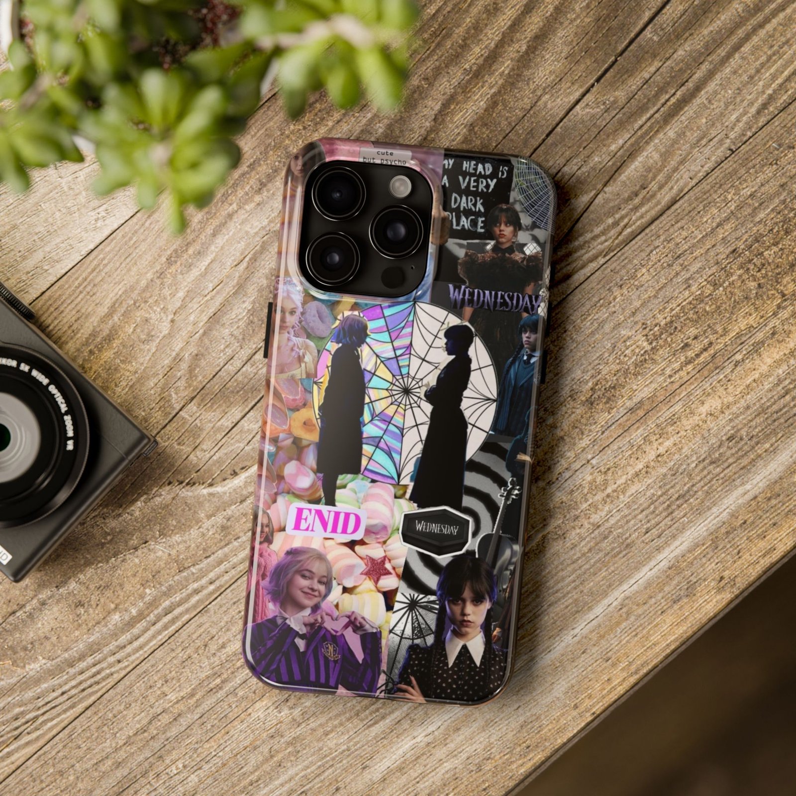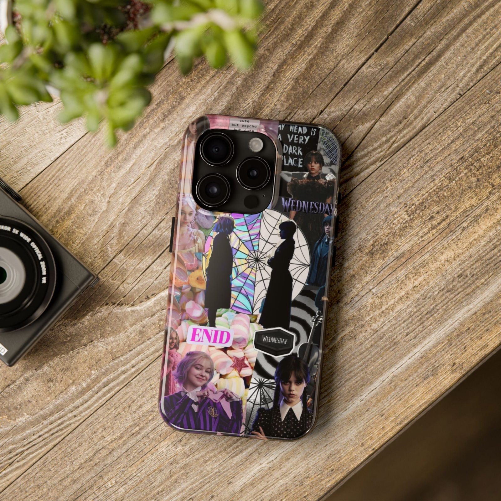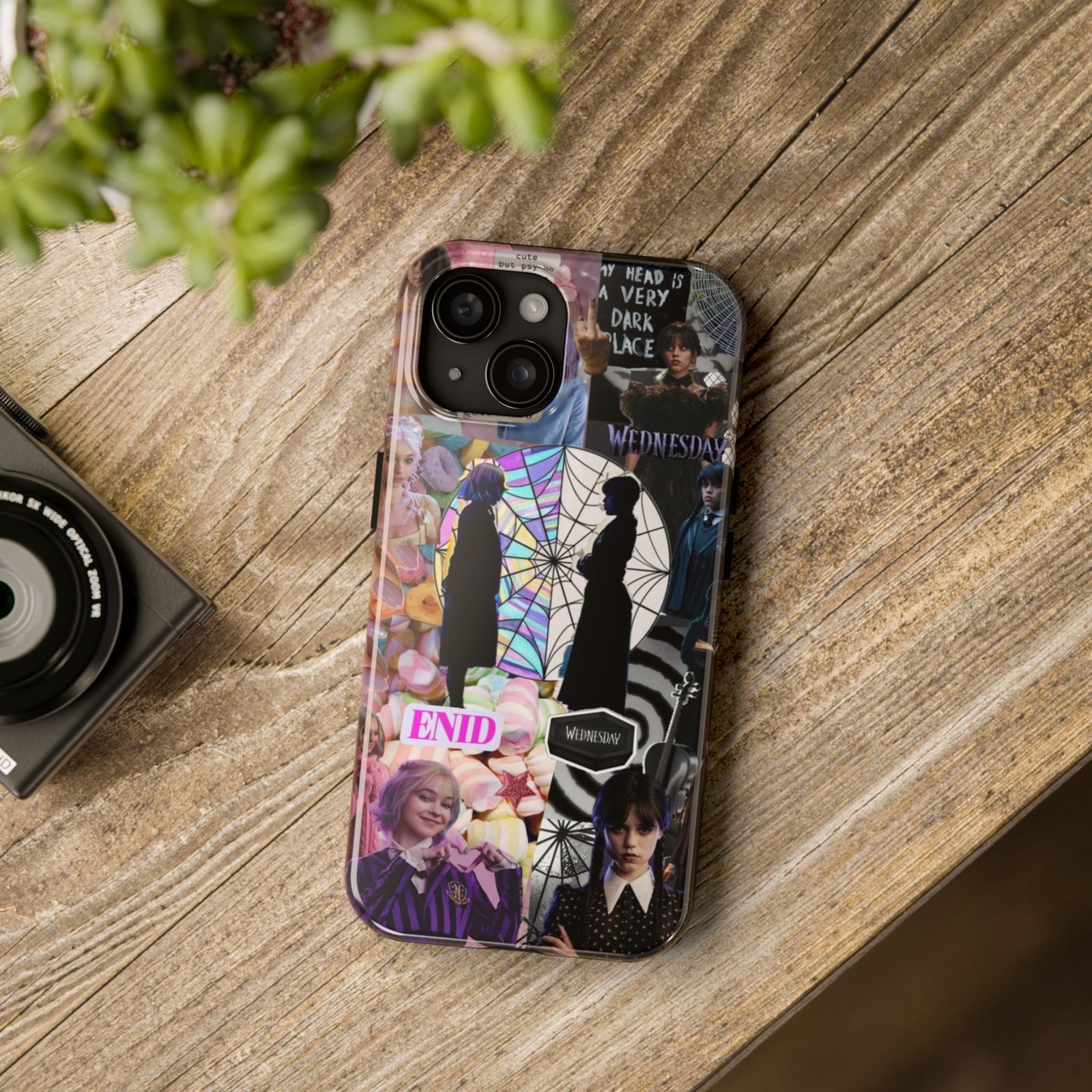 A splash of moody charm for your daily carry. This durable phone case blends glossy, high-definition art with tough, impact-resistant construction so your phone looks expressive without sacrificing protection. The design layers shadowy silhouettes, stained-glass spiderweb motifs, and soft pastel florals to create a slightly spooky, nostalgic collage that feels hand-curated. Lightweight yet sturdy, it slips on easily and keeps your screen raised off flat surfaces. Carry a piece of your aesthetic everywhere — from late-night coffee runs to study sessions and themed meetups.